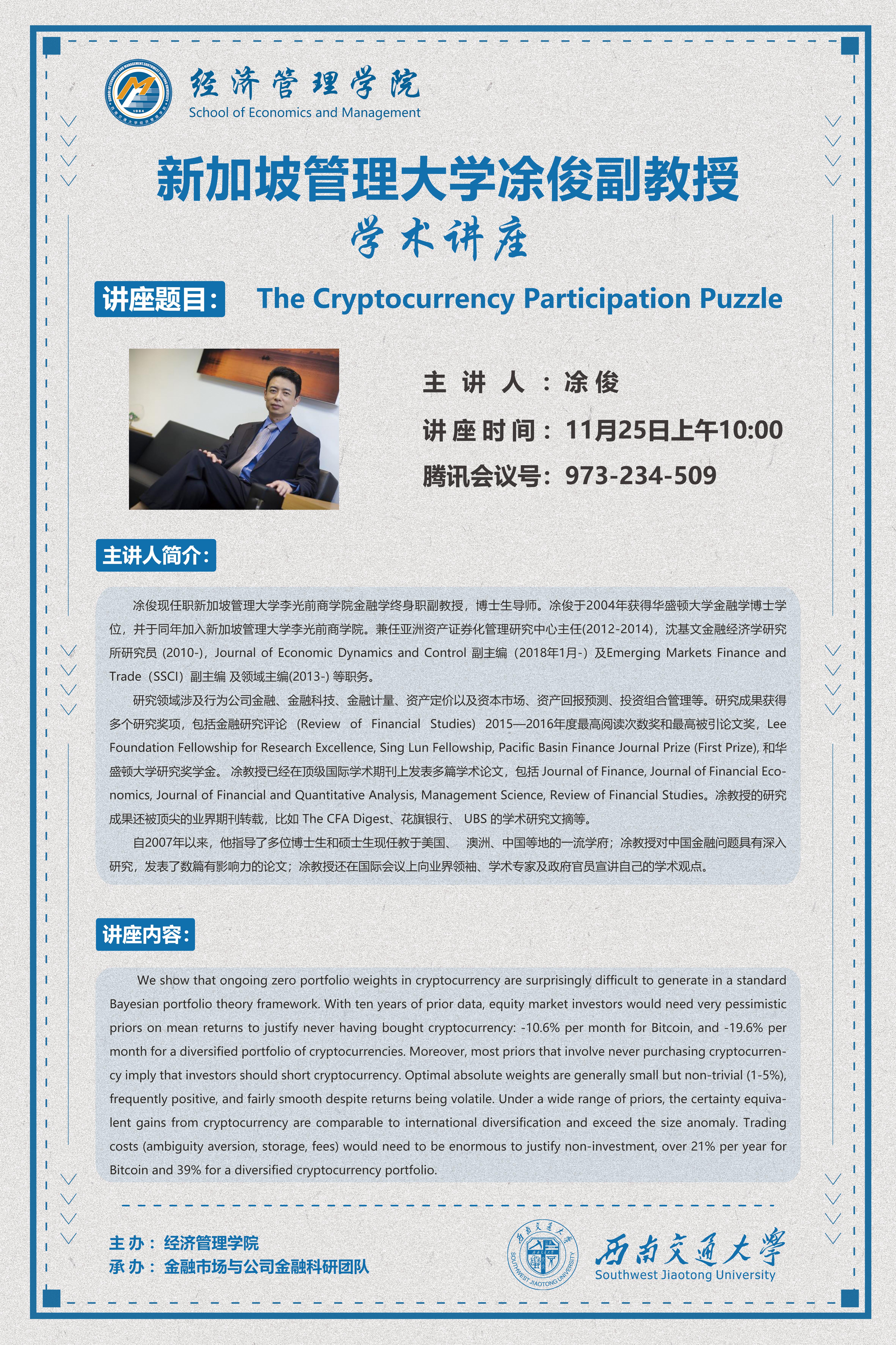 新加坡管理大学凃俊副教授学术讲座