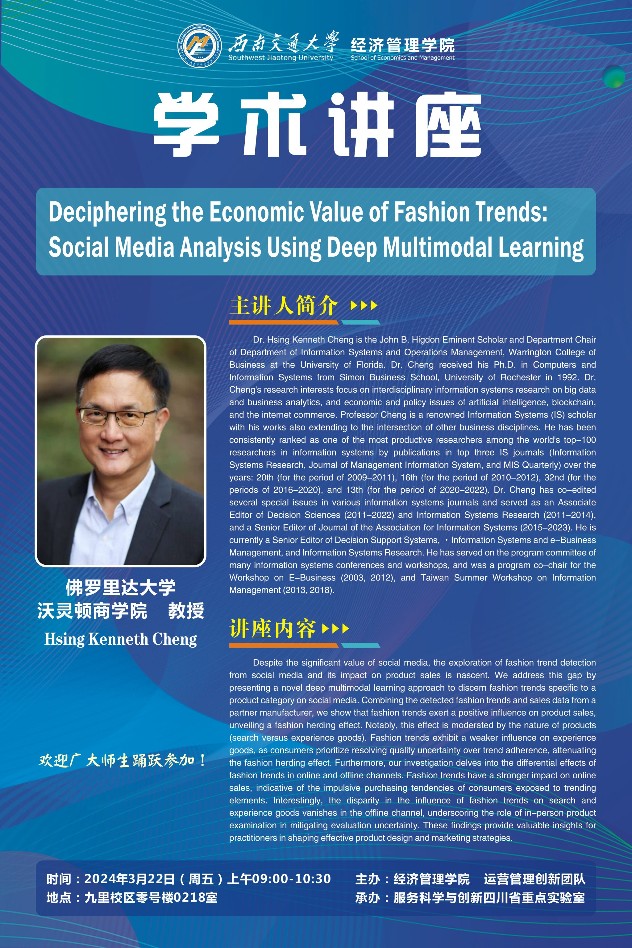 佛罗里达大学Hsing Kenneth Cheng教授学术讲座