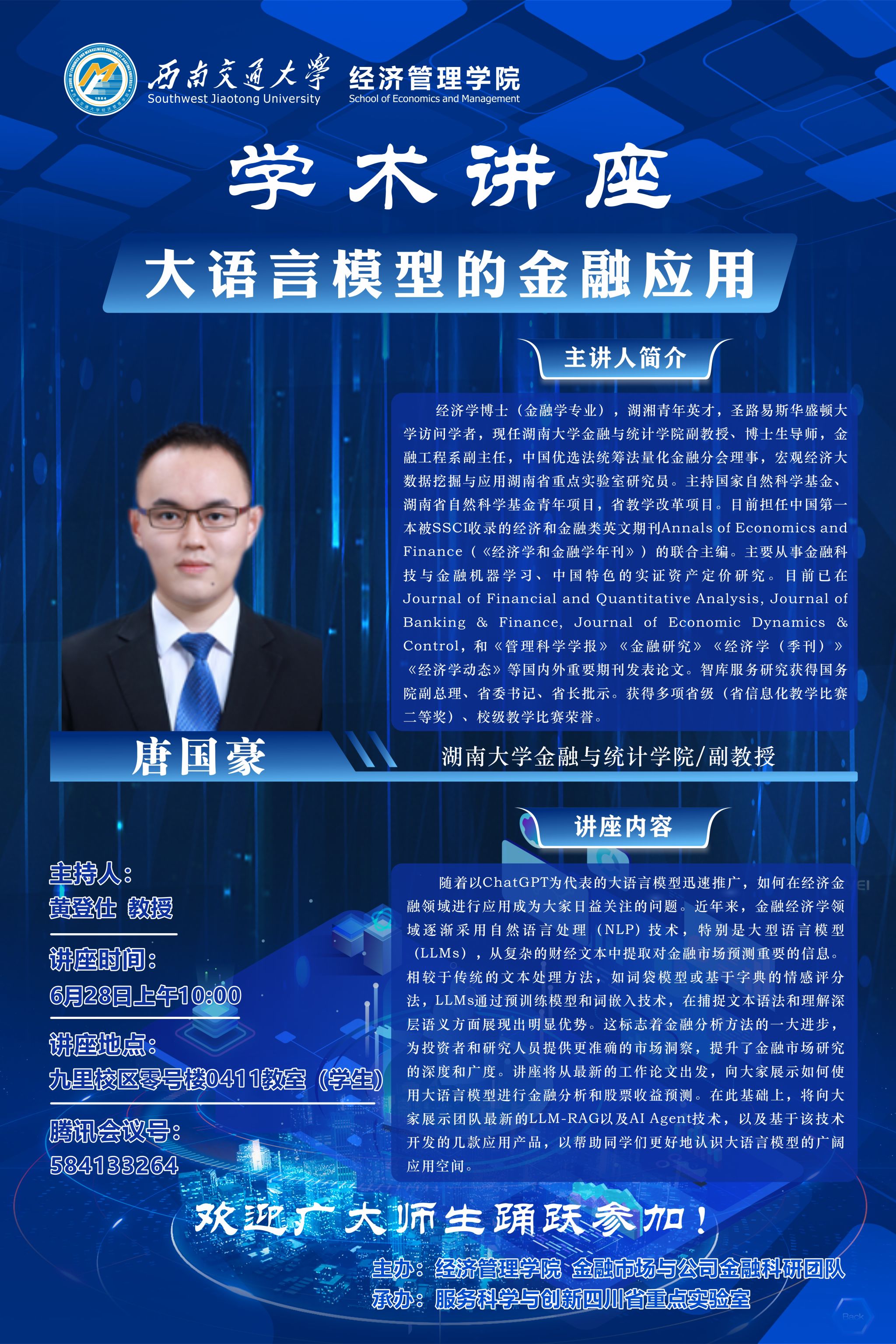 湖南大学金融与统计学院唐国豪副教授学术讲座