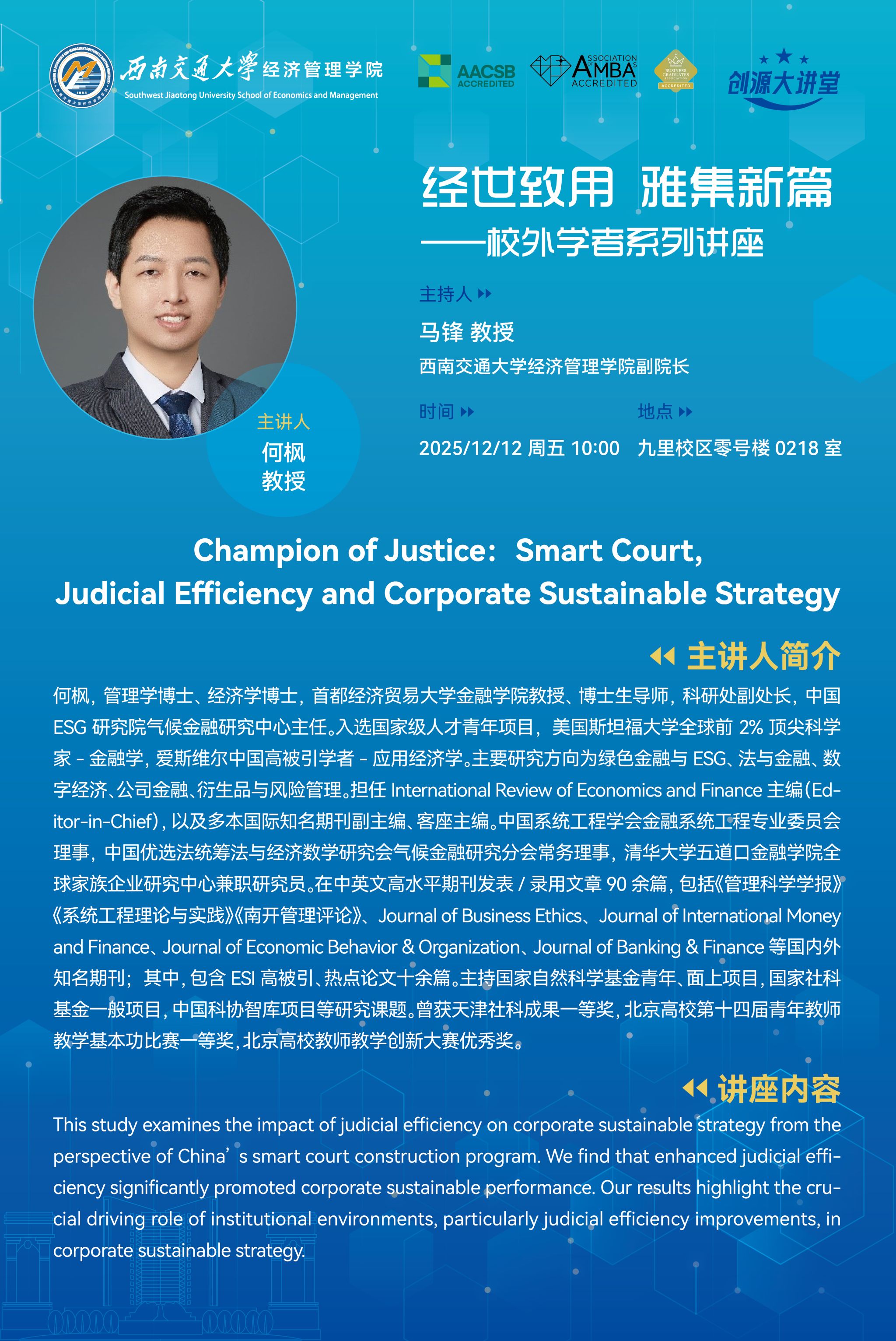 首都经济贸易大学金融学院何枫教授学术讲座