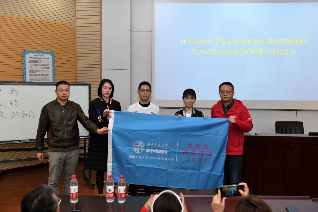 On the afternoon of March 4, 2023, the Southwest Jiaotong University EMBA Alumni Association Ge You Club Health Run and 2022 EMBA Elite Running Team Launch Event was held as scheduled in the 0215 lecture hall of Building 0 on the Jiuli campus. Guo Qiang, Executive Dean of the School of Economics and Management, Yan Libin, Deputy Secretary of the Party Committee, and Li Liang, Vice Dean, Wu Jun, Deputy Secretary of the Party Committee of the School of Foreign Languages, Liu Kun, Director of the Domestic Cooperation and Education and Training Management Office of the school, Huang Dengshi and Guan Zhenzhong, teacher representatives of the school, He Peng and Zhu Bo, Executive Deputy Director and Deputy Director of the Professional Degree Education Center, Zhang Xiaoyun, Deputy Director of the Domestic Cooperation and Alumni Affairs Center, Huang Jinling and Song Jie, class advisors of the 2022 EMBA program, and Yuan Xiaorong from the Professional Degree Education Center, as well as representatives from the Southwest Jiaotong University EMBA Alumni Association Ge You Club and the 2022 EMBA students, attended the event.