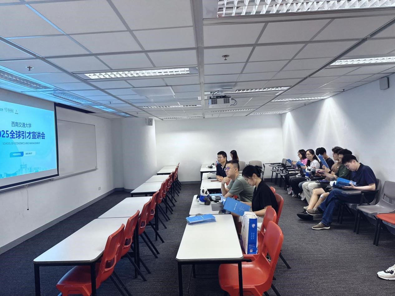 August 28, 2025 | Hong Kong—A delegation from the School of Economics and Management (SEM) at Southwest Jiaotong University (SWJTU) conducted a series of high-profile global talent recruitment events in Hong Kong during August 26-28. Held at The Hong Kong Polytechnic University, The Hong Kong University of Science and Technology, and City University of Hong Kong, the events marked a strategic initiative to strengthen SEM’s international outreach and deepen collaboration with leading academic institutions worldwide.
