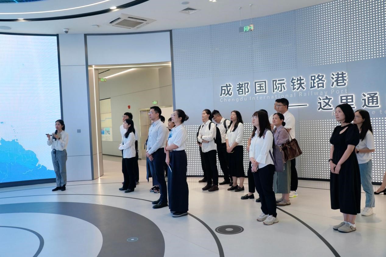 The delegation also toured the Chengdu International Railway Port Exhibition Center, where they explored the port’s evolution from a regional freight terminal into a national gateway for international trade. Through interactive displays, digital dashboards, and physical models—including a dynamic sandbox exhibit—they gained comprehensive insight into the operational success of the China-Europe Railway Express (Chengdu), particularly in channel expansion, cargo aggregation, and cross-border cooperation.
