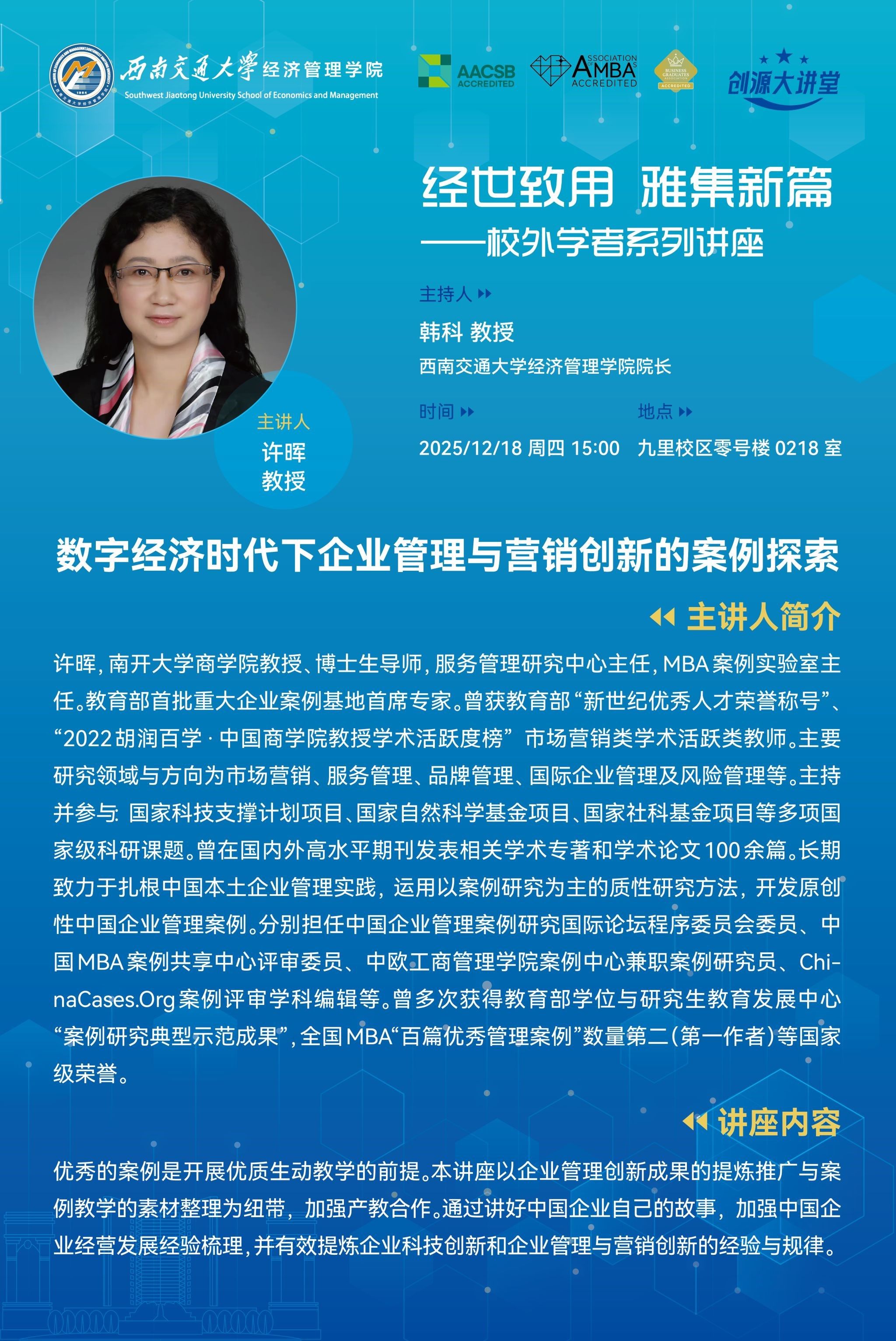 High-quality cases are the foundation of engaging, effective teaching. This lecture connects the refinement and promotion of enterprise management innovation achievements with the organization of case teaching materials to strengthen industry-education collaboration. By telling the stories of Chinese enterprises, it will systematically sort out the operational and development experiences of Chinese companies, and effectively distill the lessons and patterns of their technological innovation, as well as management and marketing innovation.