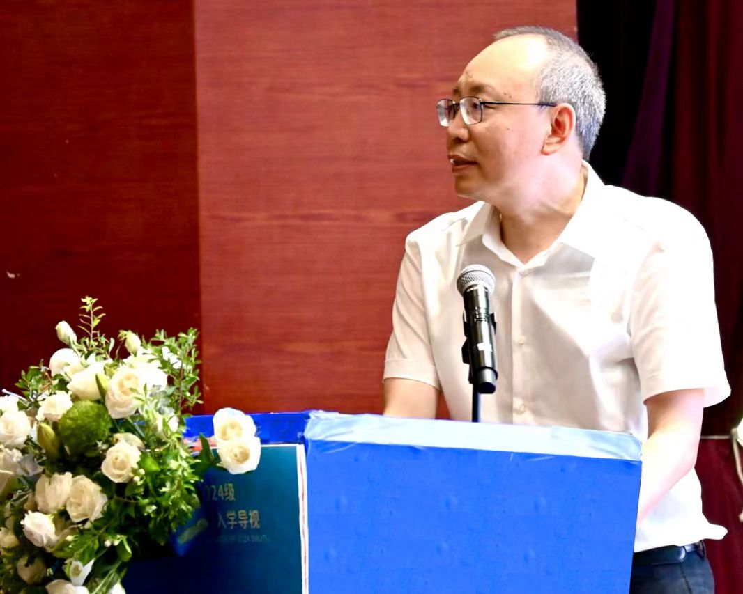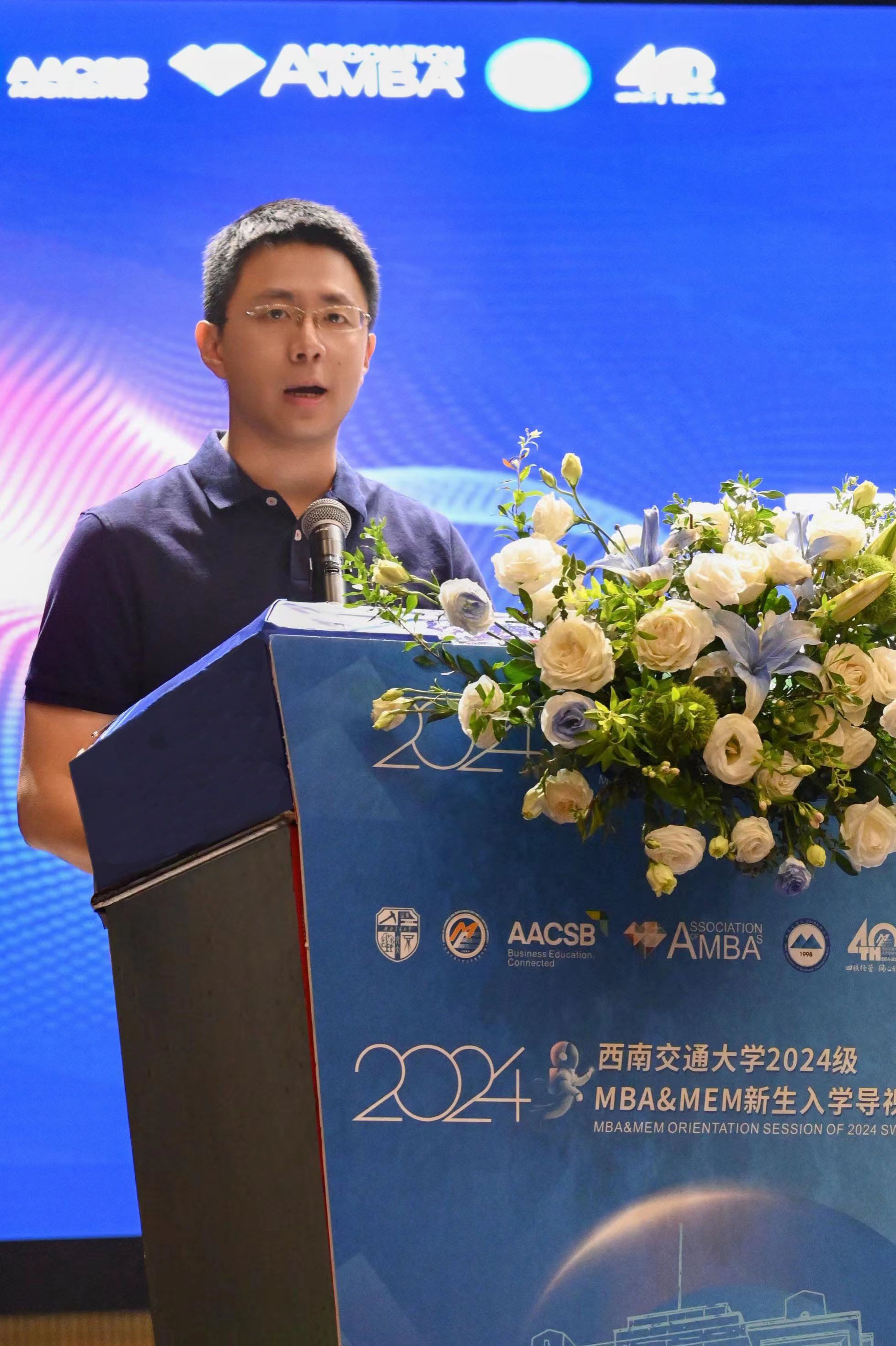 经济管理学院院长韩科致欢迎辞,韩科代表学院全体师生对2024级MBA&MEM新生表示热烈的欢迎。希望同学们在学院的学习生活中,能够充分将个人发展与国家战略、时代需求紧密结合,通过跨学科的学习与研究,深入洞察行业需求,将管理智慧与现代信息技术深度融合,以实际行动助力新质生产力的发展。鼓励大家勇于探索,敢于创新,以扎实的专业知识、卓越的实践能力和世界情怀开阔眼界、扩展思路,主动对接共建“一带一路”,实现高等教育与新质生产力发展双向奔赴。