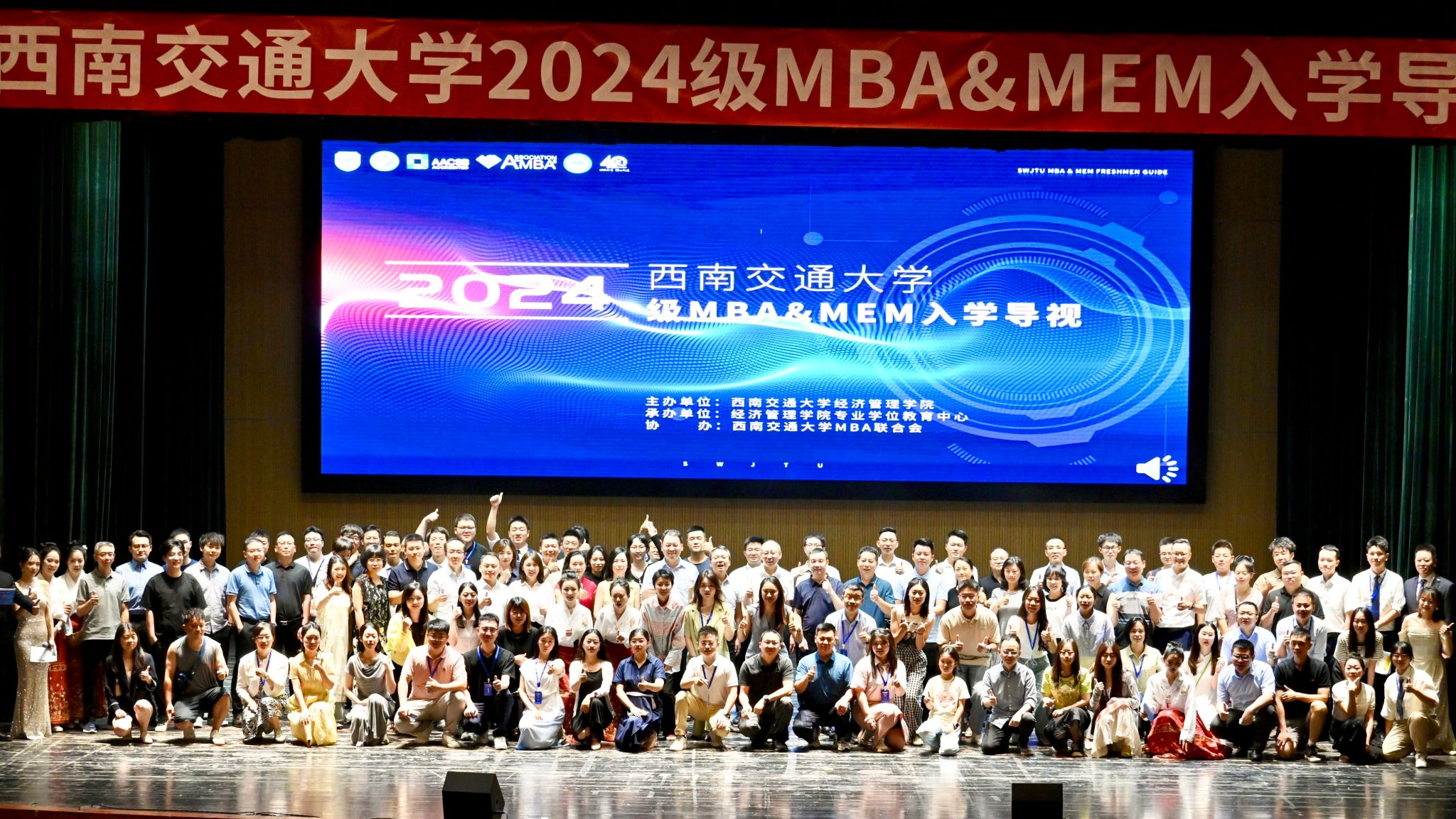 2024年7月6日上午,西南交通大学2024级MBA&MEM新生入学导视在九里校区大学生会堂隆重举行。经济管理学院党委书记郭强,院长韩科,党委副书记余小英,副院长李良,综合事务办公室主任何鹏,专业学位教育中心主任李海波,副主任诸波、李洪辉、陈静,专业学位教育中心老师袁小容、马广平、滕倩、向洪信、宋洁,西南交通大学MBA校友会会长蒋兴木和历届校友代表,第25届MBA联合会主席团成员出席了本次入学导视活动。近400名2024级MBA、MEM新生参加了本次活动。