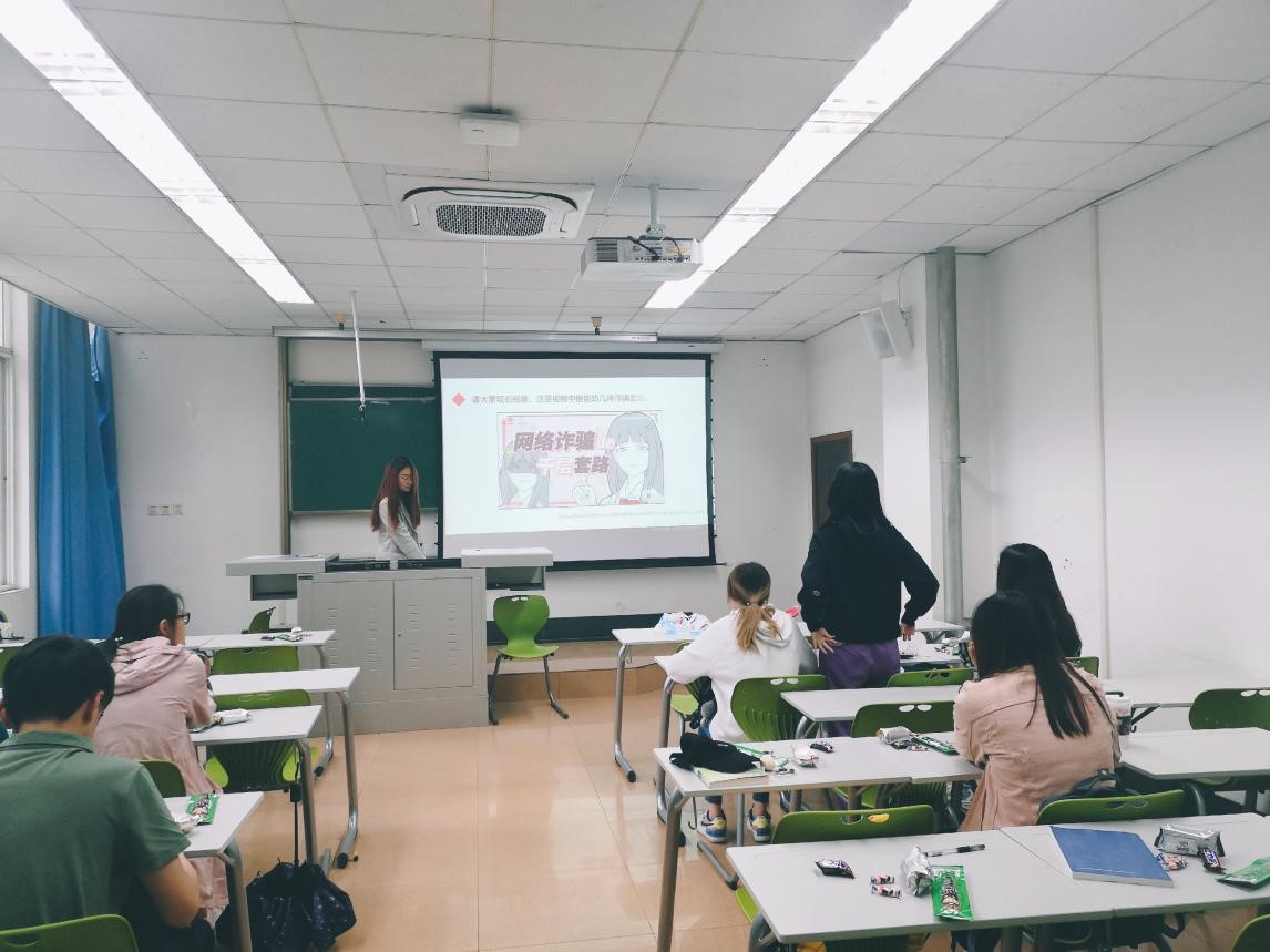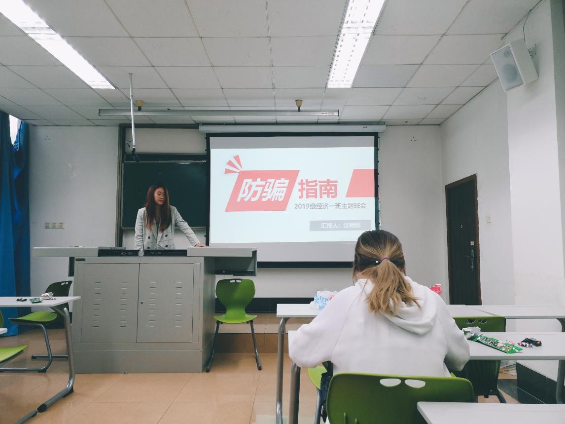 2021年4月19日上午,经济管理学院本科2019级经济一班于J4220教室召开了以“防诈骗指南”为主题的班会,本次班会由班长汪明钰主持。