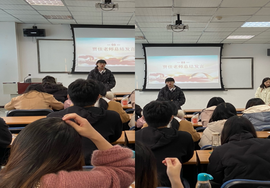 最后一项流程我们邀请到贾佳老师作总结发言,贾佳老师首先肯定了本次团组织专题活动的顺利开展,对同学们的热情表示赞扬;其次,贾佳老师对于班级同学在自评中提到的问题表达了一下自己的建议,希望同学们积极改正自己的不足之处,不应让自己在本次自我总结中发现的问题还留到下一次自我总结中,要不断地提升自我,加强学习,提高学术素养水平,为自己的未来规划作出充分准备。