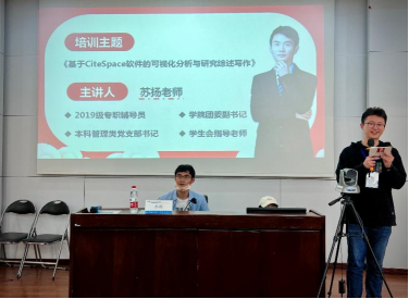 2022年4月8日下午,经济管理学院于J0215演讲厅开展“星火经英”计划第九期第四次团干部培训。本次培训由学院团委副书记、2019级辅导员苏扬主讲,主题为“基于CiteSpace软件的可视化分析与研究综述写作”。本次讲座旨在帮助大二大三的同学们学会如何查找文献,充分利用学术资源,进行学术研究。