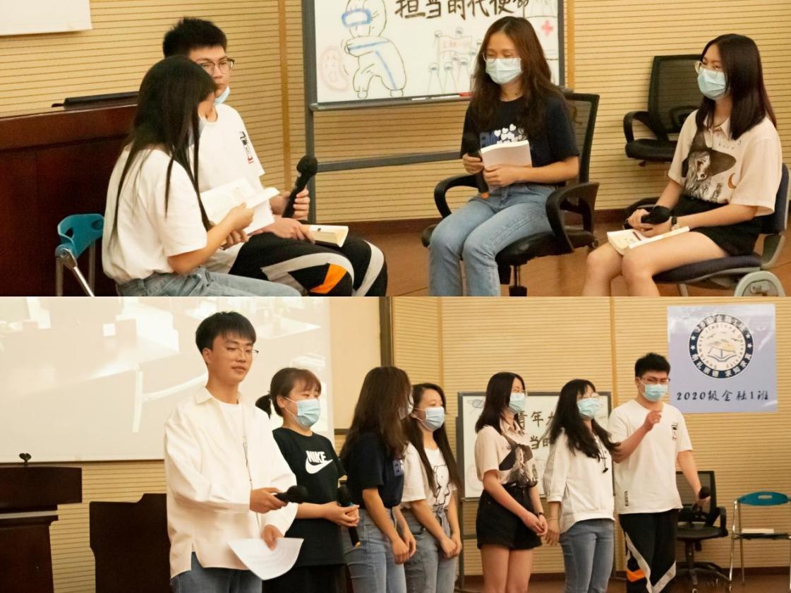 在这个环节中,全班同学踊跃发言,讨论在疫情当下,大学生在校园、社会中该如何履行责任担当使命。陈奕熹同学认为我们应尽到大学生的责任和担当,疫情期间虽有诸多不便,但依然要齐心协力服从学校的规章制度、配合学校防疫工作,积极地参与志愿活动,服务全校师生。黄进丹同学认为校园是人员较为密集的公共场所,遵守学校规定,戴好口罩、保持社交距离尤为重要。适当的参与志愿活动,做力所能及的事,也是大学生在校园里责任与担当的一种体现方式。李依璇同学表示,在时代洪流中,我们渺小但具有塑造伟大的能力。在校园里,许多师生都有着强烈的社会责任感,就算疫情形势严峻,也不会抱怨和颓废,而是积极努力地实现自我价值,这都是责任与担当的体现。最后黄雯敬同学认为,在疫情当下大学生心中要有一颗博爱的心,要去爱自己、爱他人、爱集体、爱社会,遵守规则,配合防疫人员的工作,为他们分担一些繁琐之事是应尽的责任。
