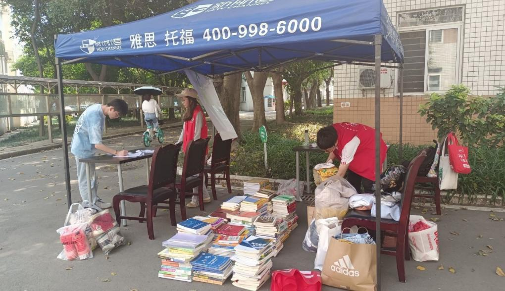 活动前期,青协的志愿者们通过发放传单的形式在全校范围内做了旧衣旧书回收的宣传,为同学们介绍了活动时间、地点和活动内容。活动当天,志愿者们摆好物品,搭建场地,开展志愿工作。