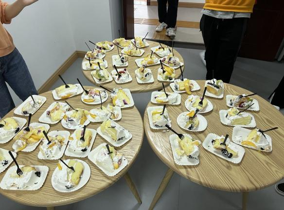 第一堂课结束后,志愿者们在阳光家园工作人员的协助下共同举办了一场大型生日会,生日会一共为9位在4、5月份生日的小朋友庆生。志愿者和小朋友们一起摆放桌椅、零食、水果,等待大家入座后,生日会就正式开始。寿星们依次上台,志愿者们为他们戴生日帽,赠送生日礼物。