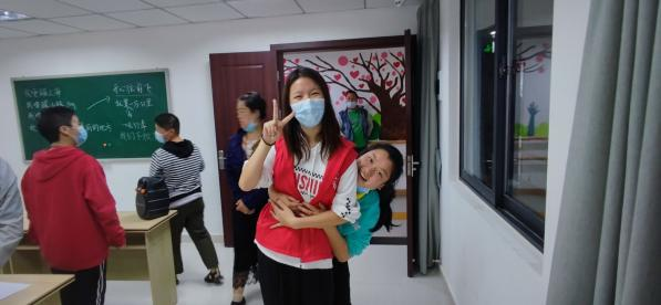 志愿者到达阳光家园后,小朋友们透过教室窗口热情地和他们招呼,“哥哥姐姐你们好呀!”随后,6名志愿者分为三组,分别前往星光班、成长班、职前班开展志愿活动。