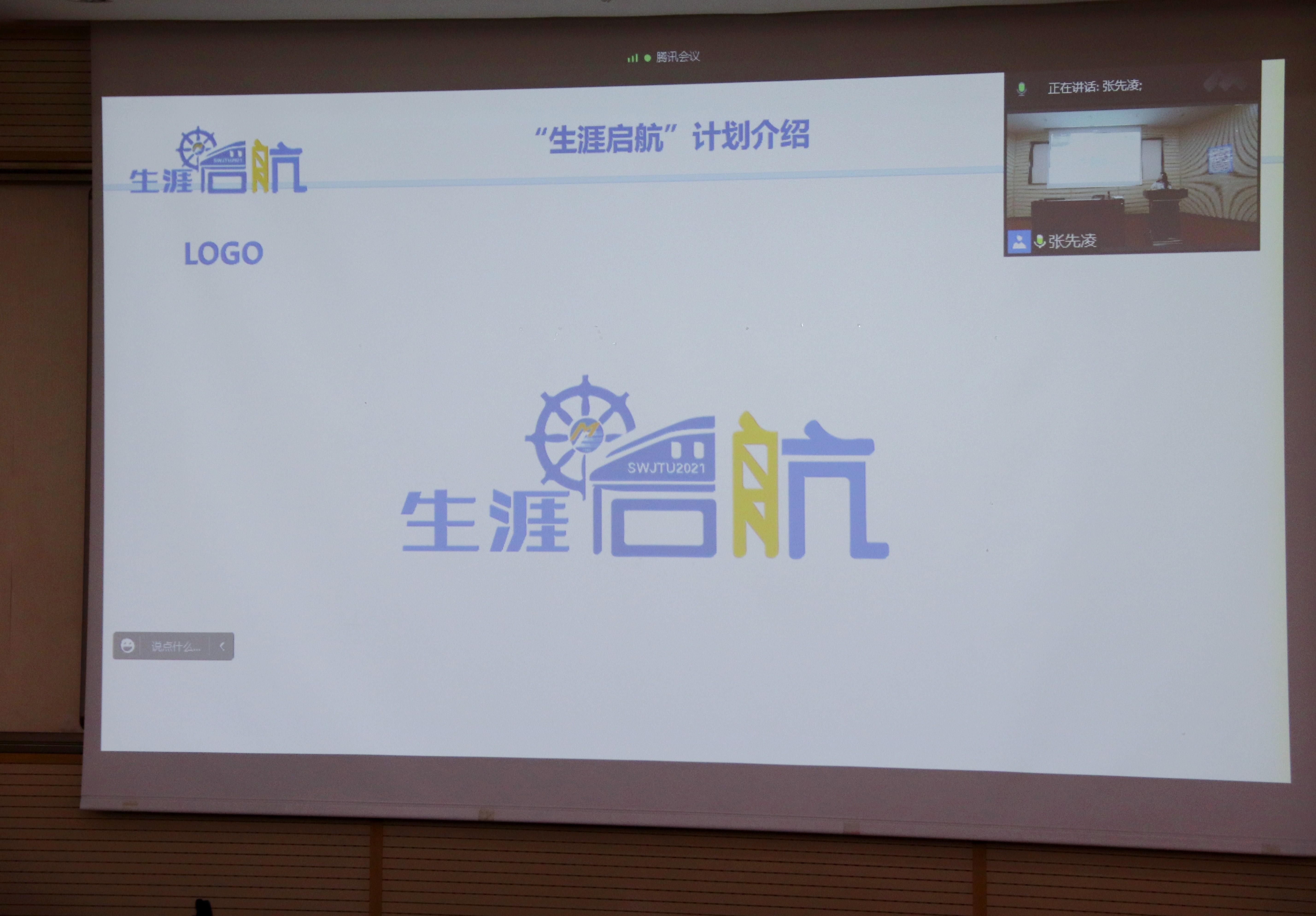 莫代玉为同学们介绍由辅导员老师们为“生涯启航”计划精心设计的标识。标识中以火车头融入交大特色,用学院院徽体现独特性,将“航”字中的“舟”设计为灯塔,寓意为同学们照亮前路,扬帆起航。