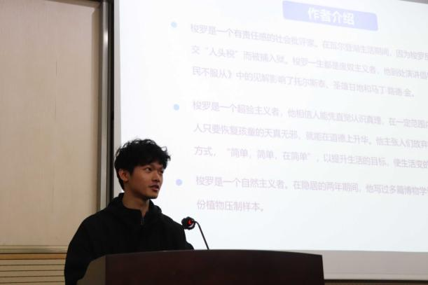 在短暂的现场签到后,由第五、第六位选手进行了书籍展示,他们分别分享了自己对《瓦尔登湖》和《N号房追踪记》的感想。在第六位选手结束分享后,现场进行了抽奖环节,观众踊跃参与,欢乐连连。紧接着,最后三位选手也完成了他们的书籍分享,其中一位同学以不同的视角分享了《人生》这本书,另外两位同学则带同学们领略了《精灵宝钻》和《百年孤独》的魅力。全部选手分享书籍结束后,主持人随机邀请现场观众分享自己的读书心得,大家都十分积极地参与。