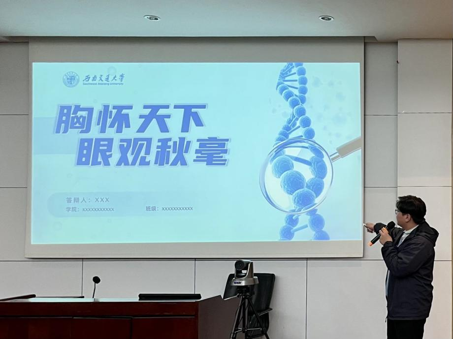 培训开始,于佳琪通过对答辩的趣味解读,帮助同学们精准感知到答辩模式的核心要素。紧接着他以自己的班级答辩为例,由点及面地剖析了答辩讲稿的层次结构与内容要点,分享了演讲经验及技巧,为同学们构想答辩讲稿提供新思路。