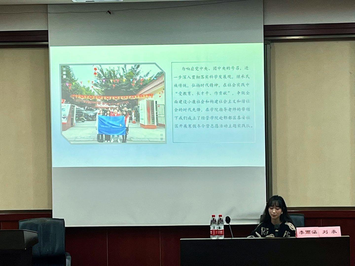 2023年4月6日晚,“星火经英“计划第十一期第四次团干部培训于J0224顺利举行,本次培训由全国百强大学生暑期实践团队成员、多次获得社会实践奖项的刘承与李雨涵主讲,主题为“社会实践团队经验分享”,旨在帮助同学们深入理解社会实践活动内涵,更好开展社会实践工作。