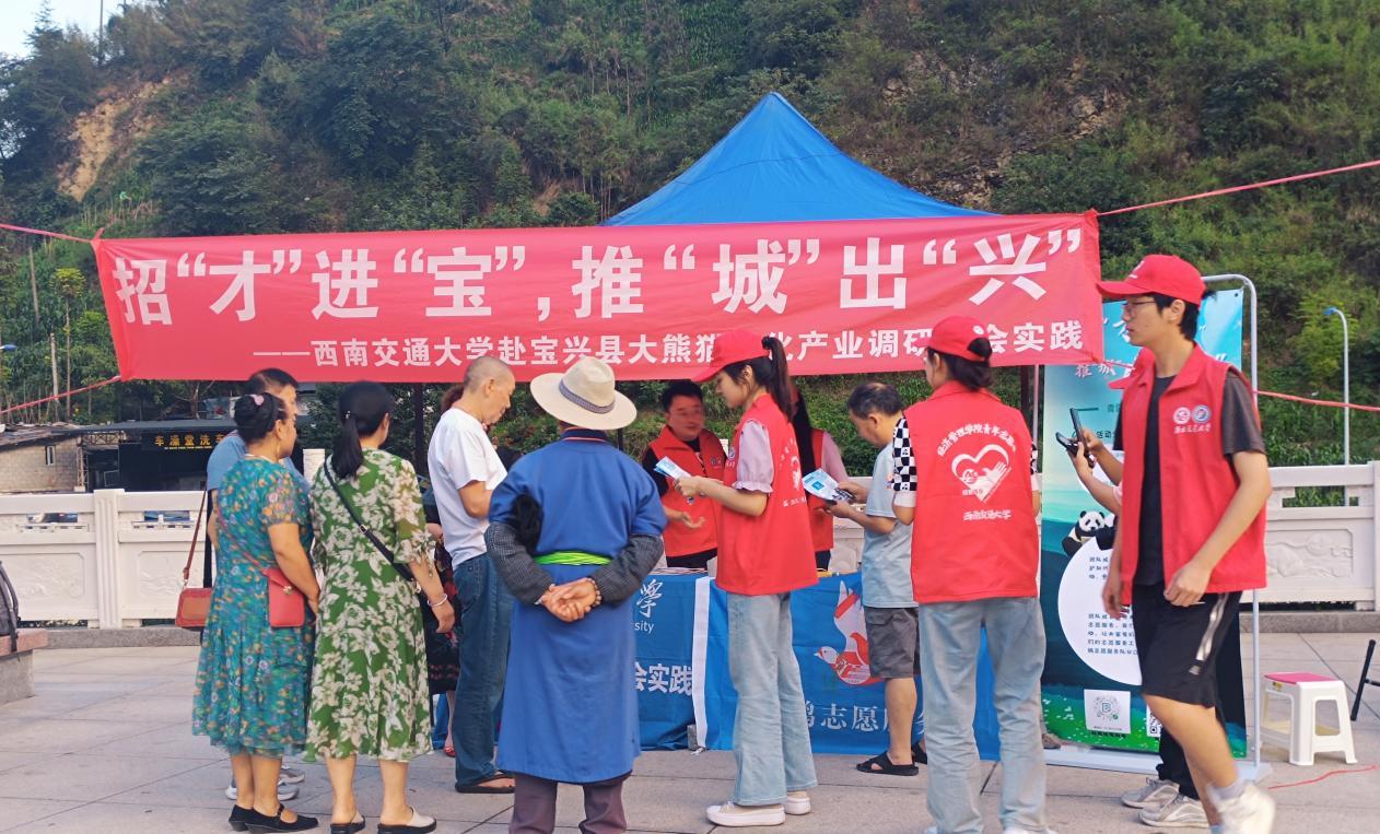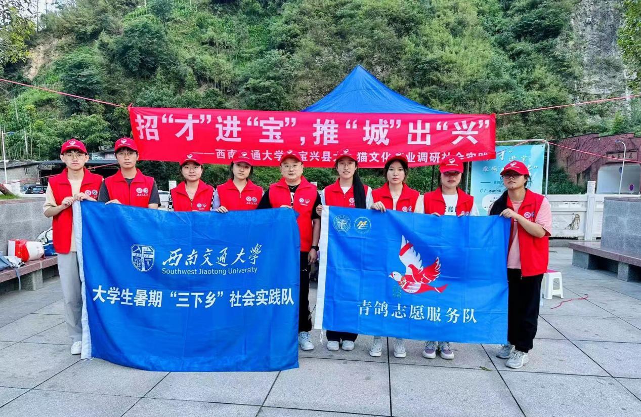 为贯彻落实习近平总书记“加快建设农业强国,扎实推动乡村产业、人才、文化、生态、组织振兴”的重要指示精神,以区域文化、产业发展带动经济发展,2023年7月3日,西南交通大学经济管理学院青鸽志愿服务队一行来到了四川省雅安市宝兴县,开展了为期5天的大熊猫文化产业调研暑期“三下乡”社会实践活动。活动期间,团队成员通过实地调研、走访宣传、培训学习等方式,深入了解当地大熊猫文化产业的发展现状及未来规划,并借助网络媒体宣传推广特色产业,推进生态文明建设,助力乡村振兴,建设美丽中国。