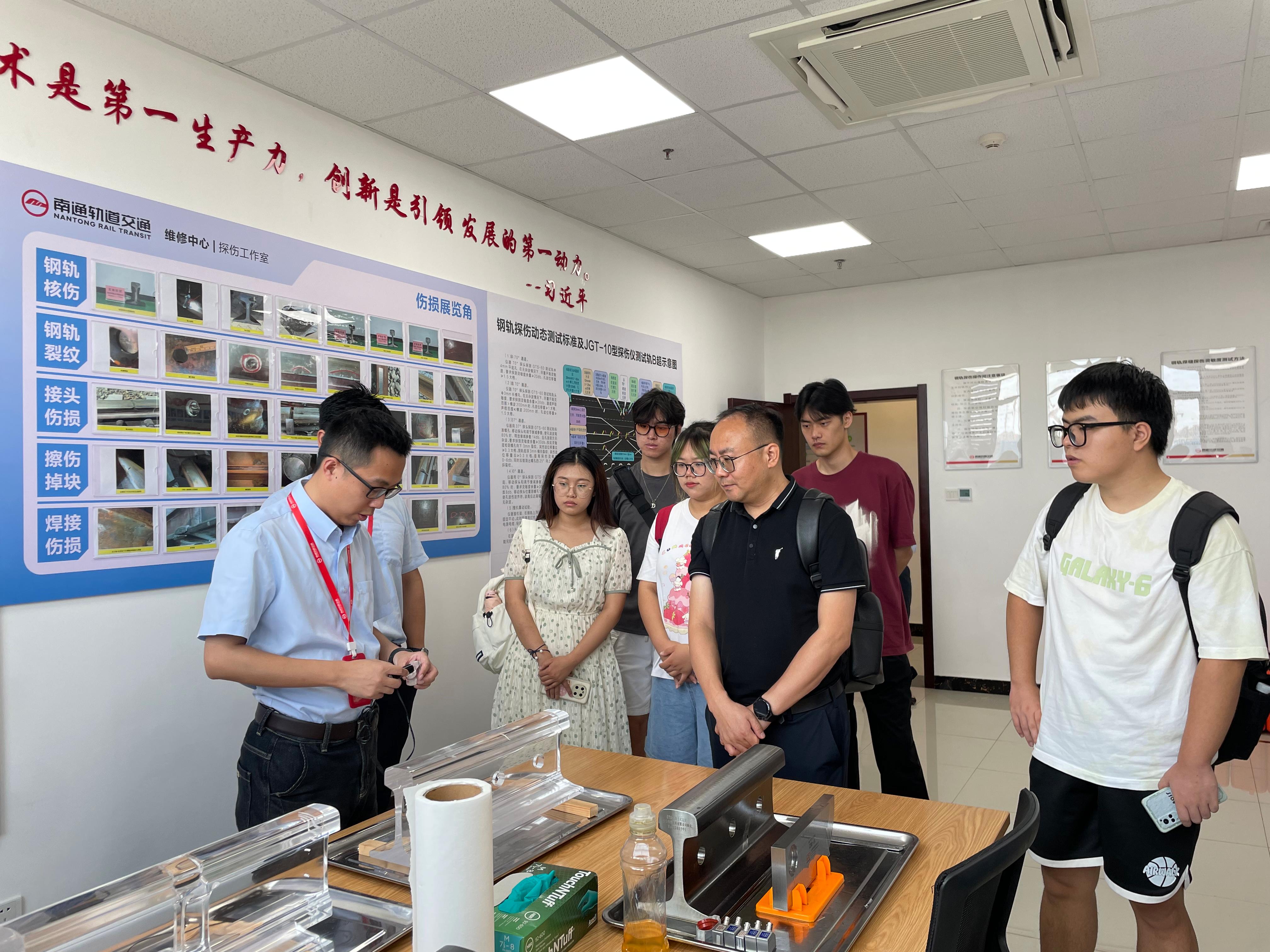 8月9日上午,实践队师生前往南通轨道交通集团有限公司运营分公司调研学习。在企业校友代表的陪同下,实践队先后参观了企业文化宣传栏、列车指挥室、列车维修车间并试乘了新研发的南通地铁二号线列车。随后,实践队与运营分公司总经理李金强、主要部门负责人及校友代表开展了座谈会。会上,公司领导向实践队详细介绍了公司沿革、主要业务和发展情况,并强调了公司在业务创新和人才引进方面的战略;实践队也向公司领导介绍了西南交通大学的基本情况以及在轨道交通领域的卓越成就,此次座谈会为校企双方的深度合作夯实了基础。