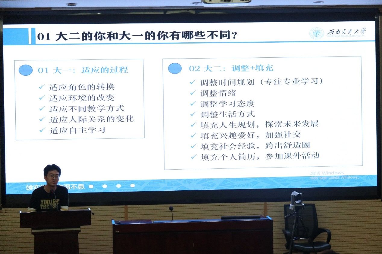 最后,他围绕同学们提出的成长困惑以及关心的问题进行了有针对性的引导,并在多个方面作出提醒。在健康方面,他强调大学生应该提高身体素质,加强体育锻炼,同时也要注意心理健康,遇到困扰及时和辅导员沟通;做到规律作息,合理饮食。在学习方面,同学们应注意第二课堂学时的修读和英语四六级备考,并利用学校图书馆、智慧就业网等资源。在生活方面,切忌使用违章电器,务必遵守学校的规章制度,注意寝室卫生和人际关系处理。