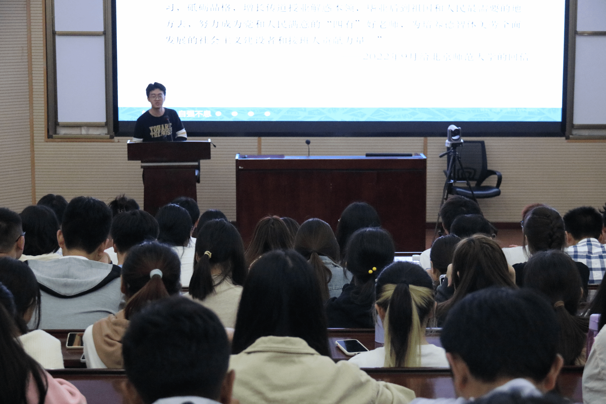 首先,辅导员王子琦带领2022级同学学习习近平总书记考察高校重要讲话、给师生重要致信回信精神等内容,并以“脚踏实地”、“刻苦学习”、“坚定目标”等关键词教育同学们要牢记习近平总书记对青年学生的殷殷嘱托,立志成长为新时代好青年,在将“小我”成长发展融入“大我”奋斗的火热实践中深入思考“民族复兴,青年何为”。
