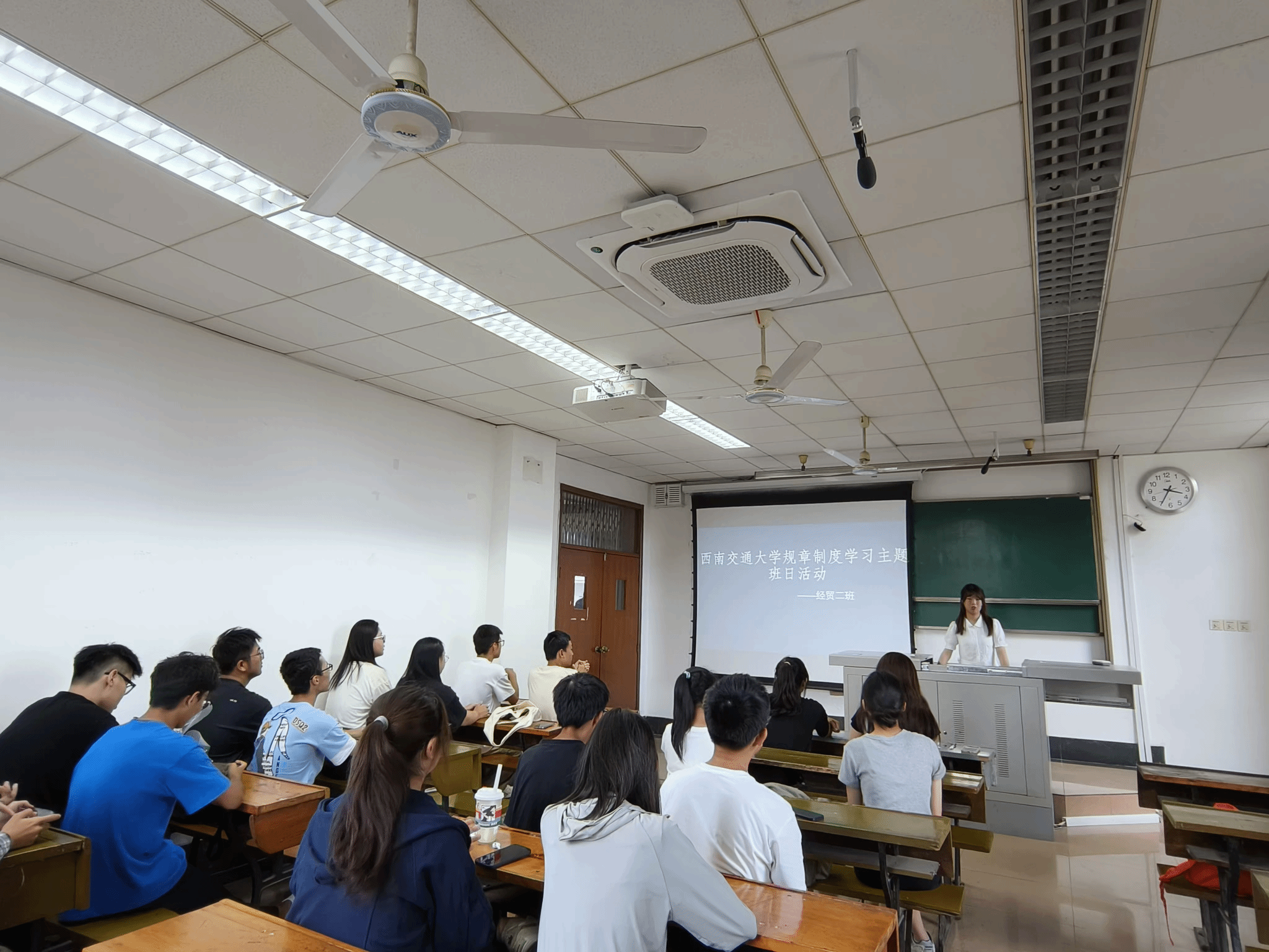 为了帮助新生同学们更快地熟悉、适应大学生活,养成良好的行为习惯,开学伊始,经济管理学院2023级新生各班以主题班日活动的形式组织新生学习西南交通大学一系列本科生相关管理规章制度,帮助新生了解学校各项规章制度,明确学生的责任、权利和义务。