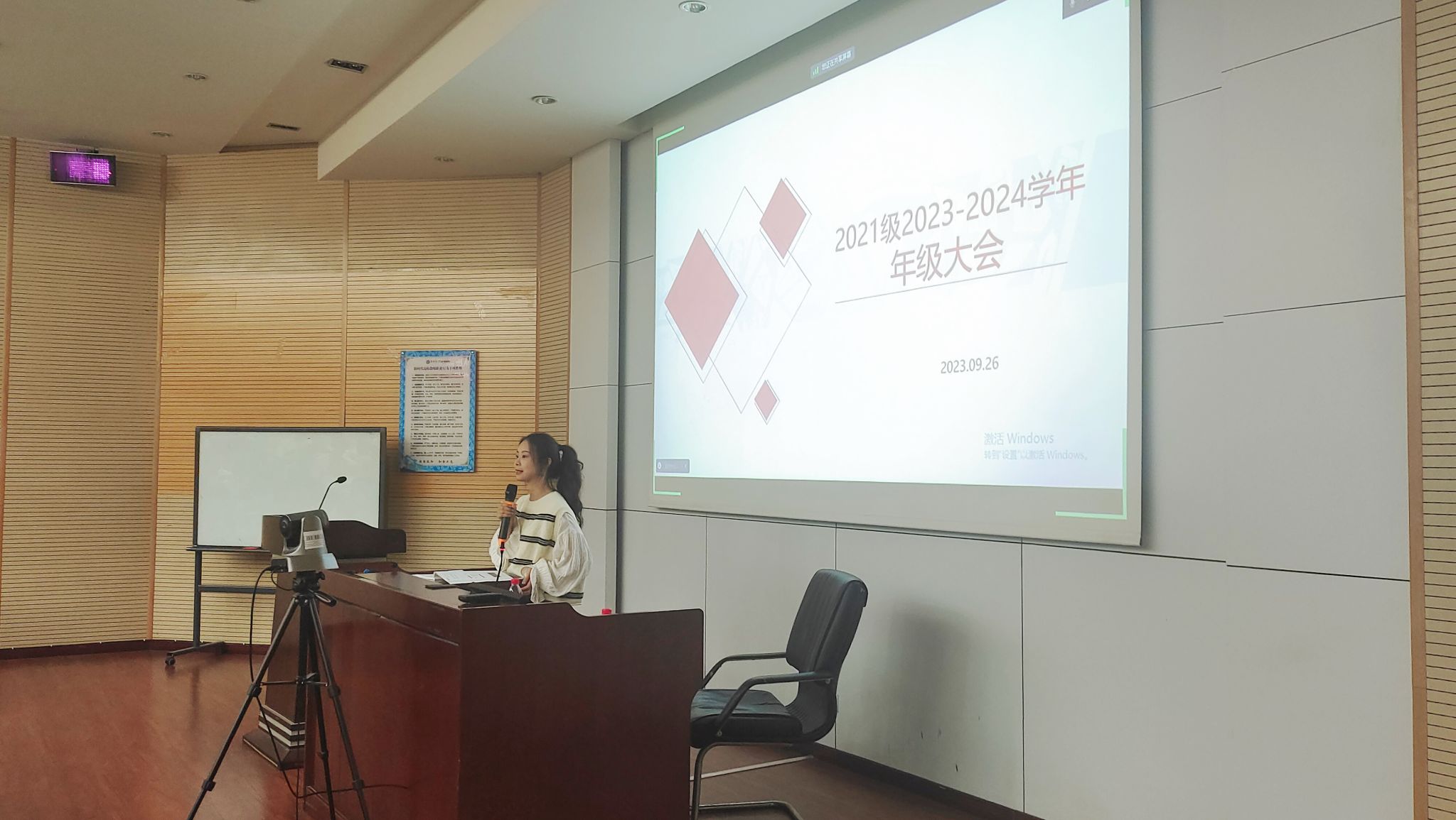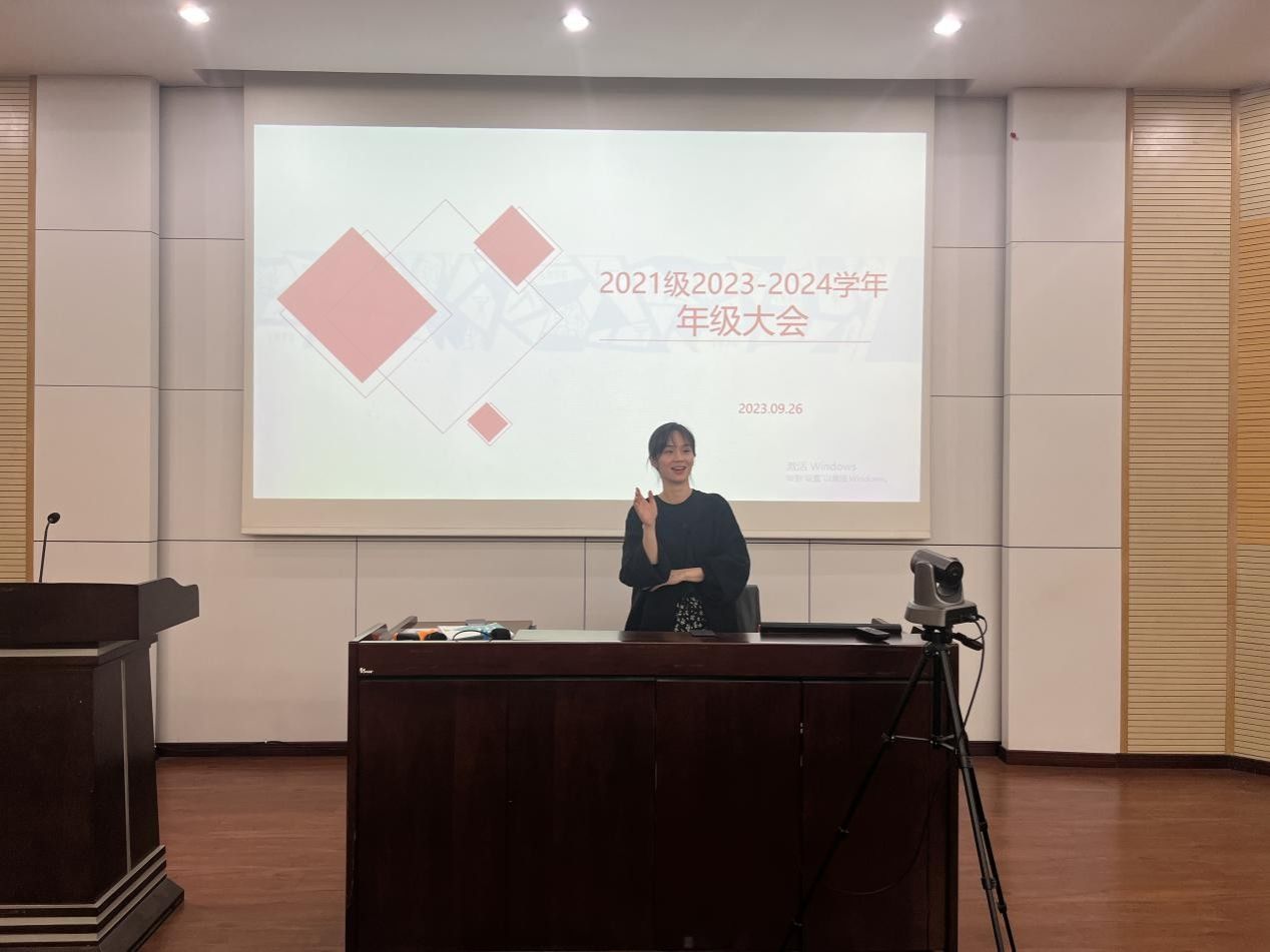为了在大三学年伊始引导学生树立正确的学业、职业生涯目标,2023年9月26日19:00,经济管理学院本科2021级在九里校区J0215教室举行年级大会。本次大会采取“线上+线下”相结合的方式举行,由本科2021级辅导员张先凌、钟文婷主持,2021级全体学生参加。