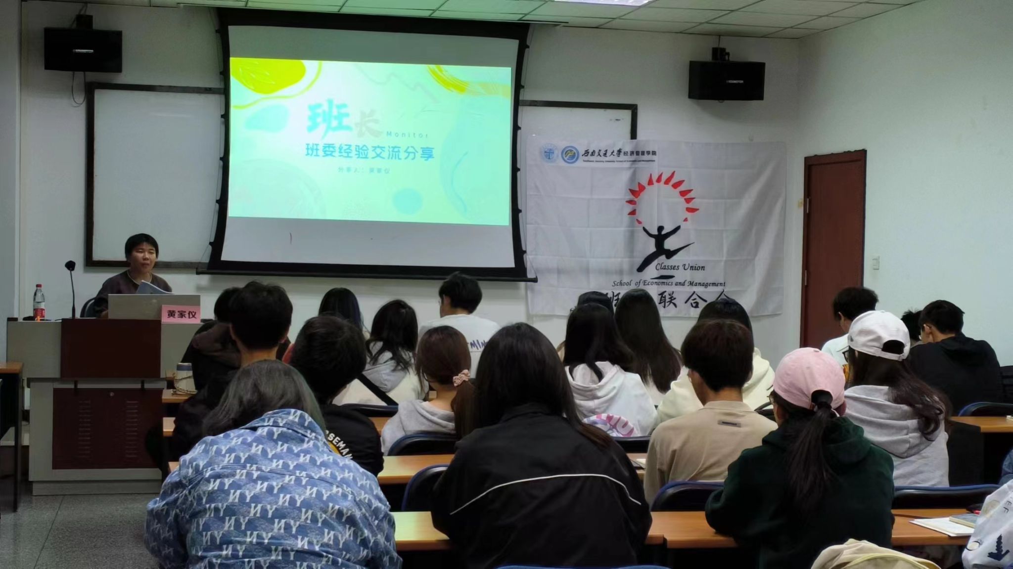 为提高各班班委的综合素质和工作技能,进一步加强经济管理学院本科班集体建设,促进班级间学生干部的学习和交流,2023年10月15日19时30分,经济管理学院班级联合会于J0316、J0317、J0318教室分班长场、团支书场、学委场三个会场组织开展“责任在肩,同学共进”班委培训会,分别邀请了本科2021级工程2班班长黄家仪、本科2020级金融1班团支书林洁和本科2021级金融2班学习委员杨雅舒面向本科2022级、2023级学生干部进行经验分享。