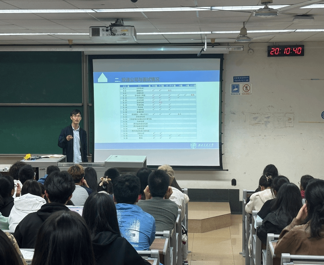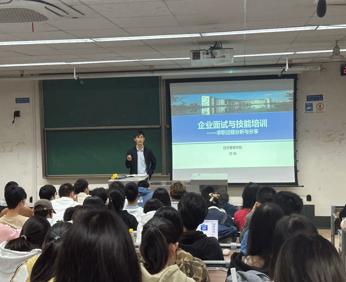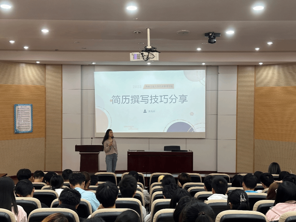 为进一步助力同学们学业和职业生涯规划,指导同学们如何结合自己的规划与实践,制作自己的第一份简历和更好地进行面试,经济管理学院本科2023级分别于10月27日下午和11月2日晚上在九里校区J0215和J4310教室开展了简历撰写技巧分享和企业面试与技能培训讲座。本次讲座由学校中级生涯导师张先凌老师,本科2023级辅导员王哿老师、苏扬老师主讲,本科2023级全体同学参加。