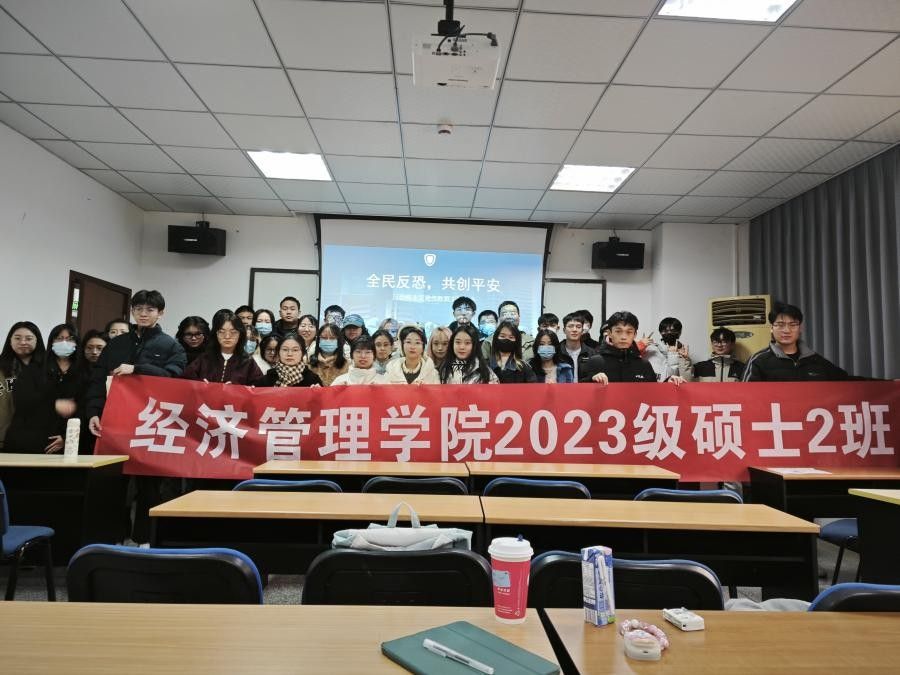 为深入贯彻落实习近平总书记关于反恐怖工作的重要指示精神,切实提升我校学生反恐怖意识和能力,营造全校安全稳定良好氛围,筑牢校园安全防线,2023级硕士2班于12月15日组织开展“全民反恐,共创平安”反恐怖主义宣传教育主题班会,2023级研究生辅导员李勇老师到场参加此次班会活动并作出重要指导。