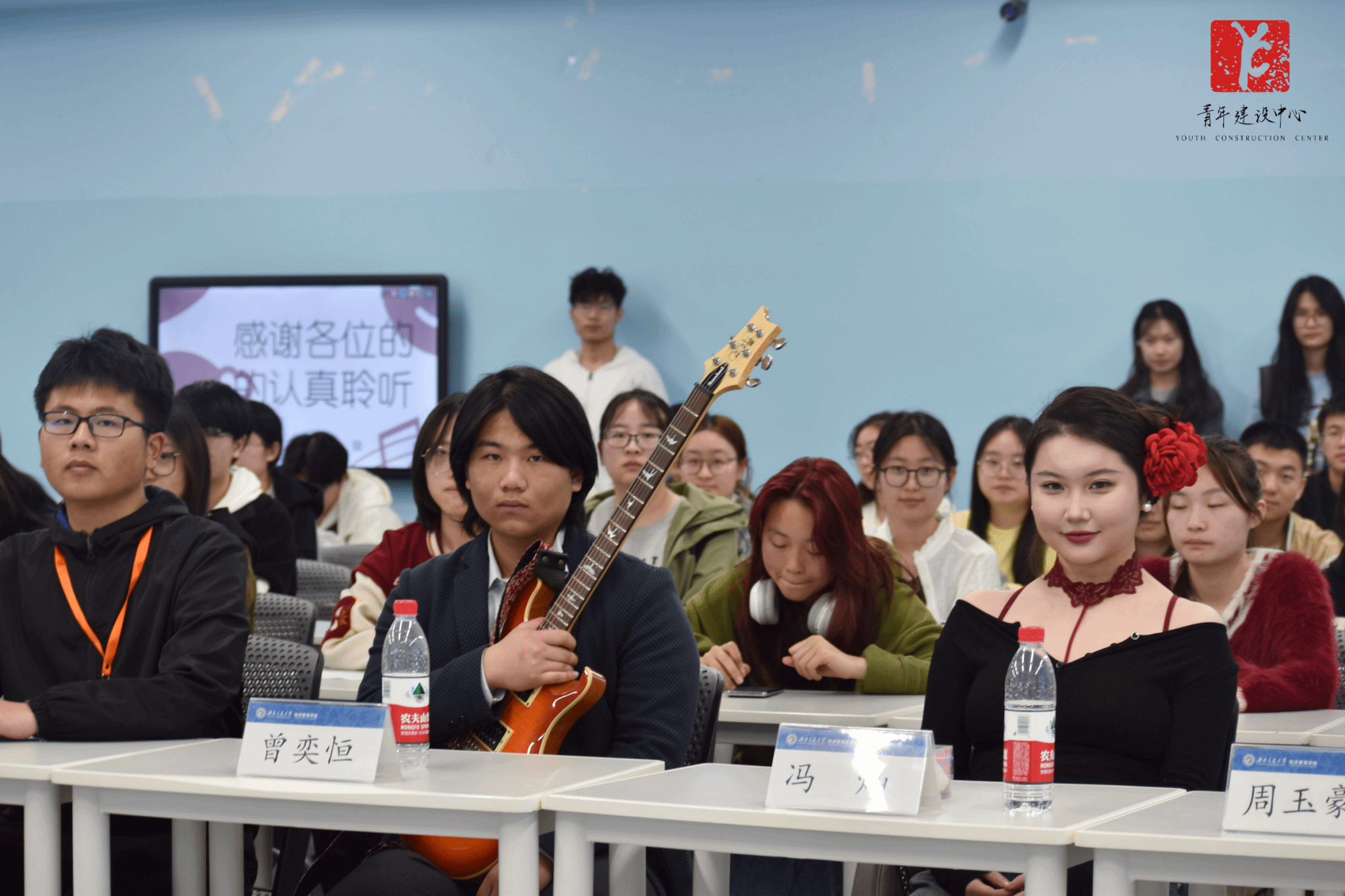 此次团干部培训中,主讲人通过吉他音乐给团干部们带来了一场听觉的盛宴。美妙的音乐作品不仅表现了吉他的魅力,更传达了一种对生活的热爱和对艺术的追求。相信团干部们在这次音乐茶话会后能更好地享受音乐,热爱生活。