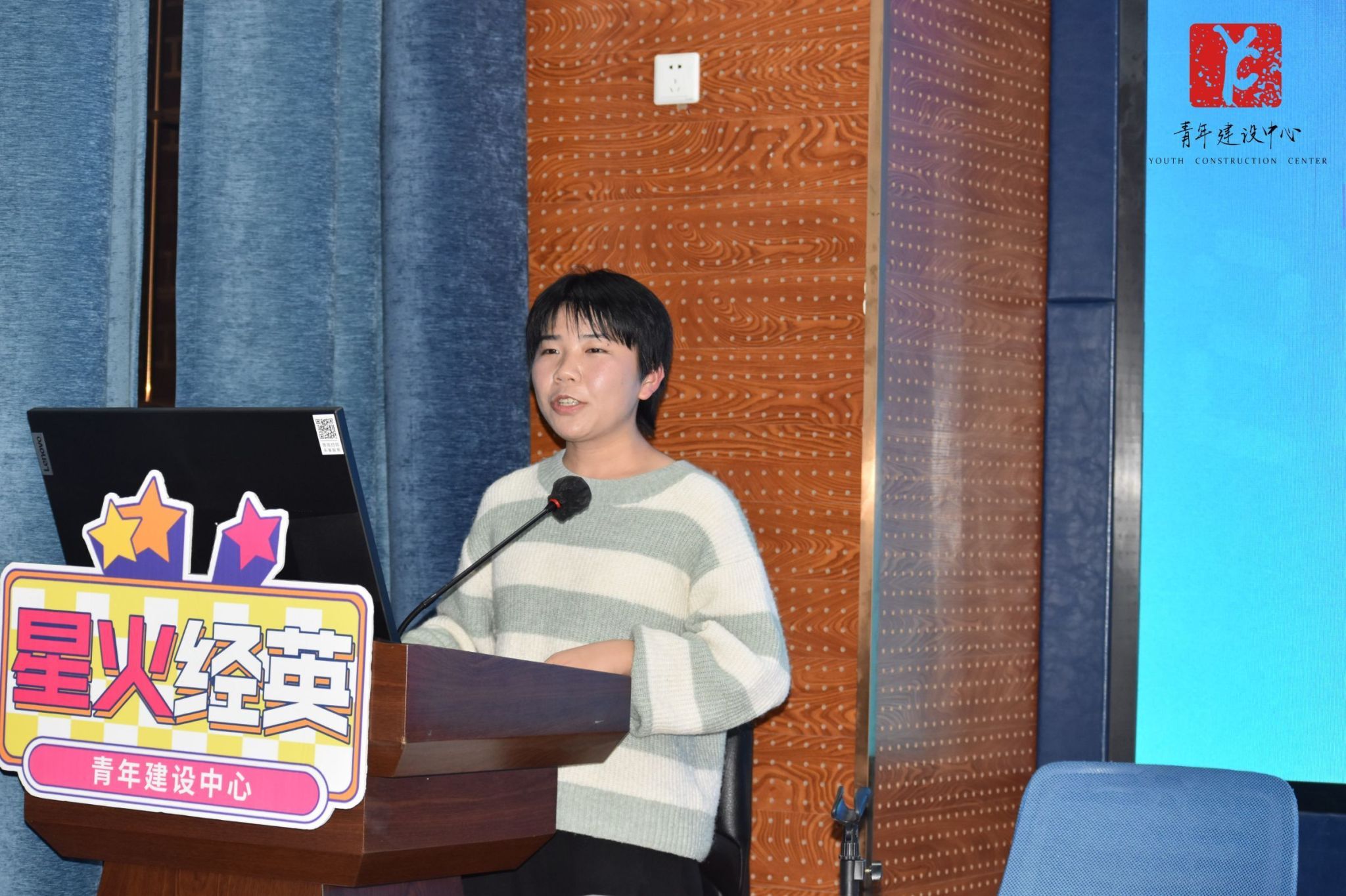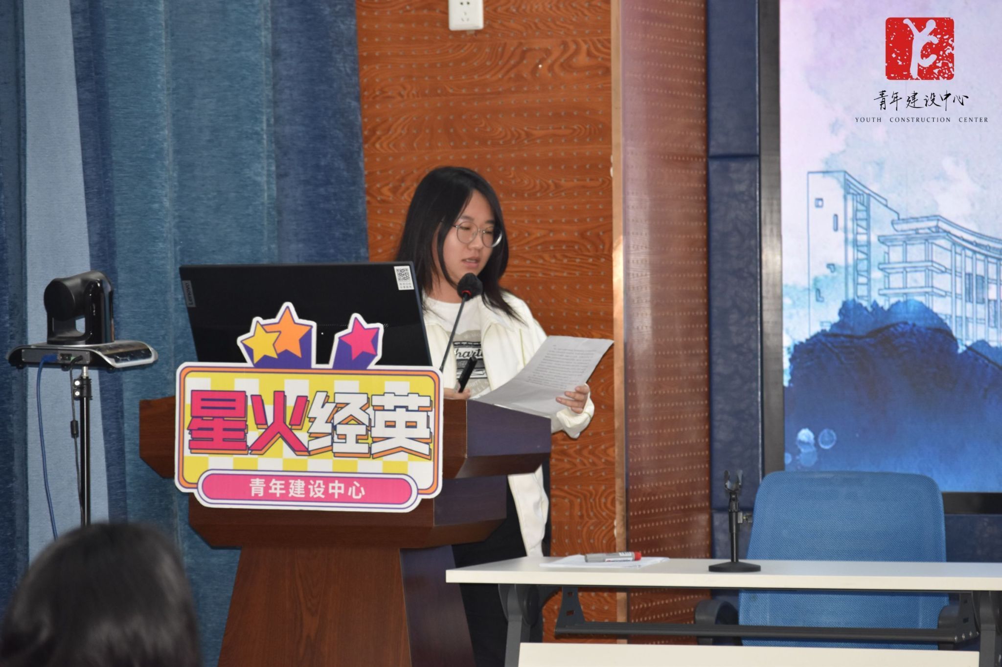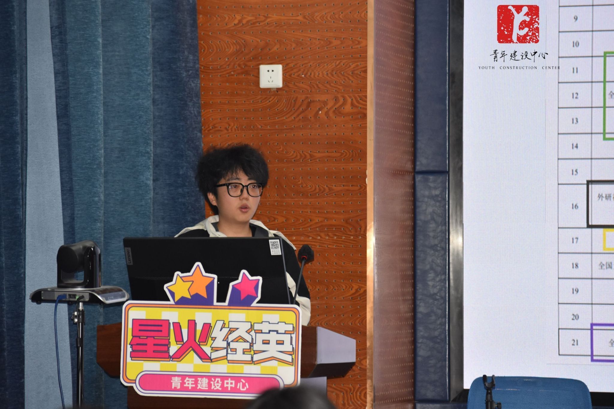 紧接着,薛怡然为团干部们介绍了其团队竞赛的科研成果与科研经历,在介绍过程中分享了关于竞赛的实用技巧。而后,她向团干部们分享了自身对于大学生科研的看法,并结合自身科研经历,运用黄金圈法则为团干部们分享了科研的实用方法。薛怡然鼓励团干部们在假期参与科研实验以获取科研经验,同时也提供了一些参与科研的方法。