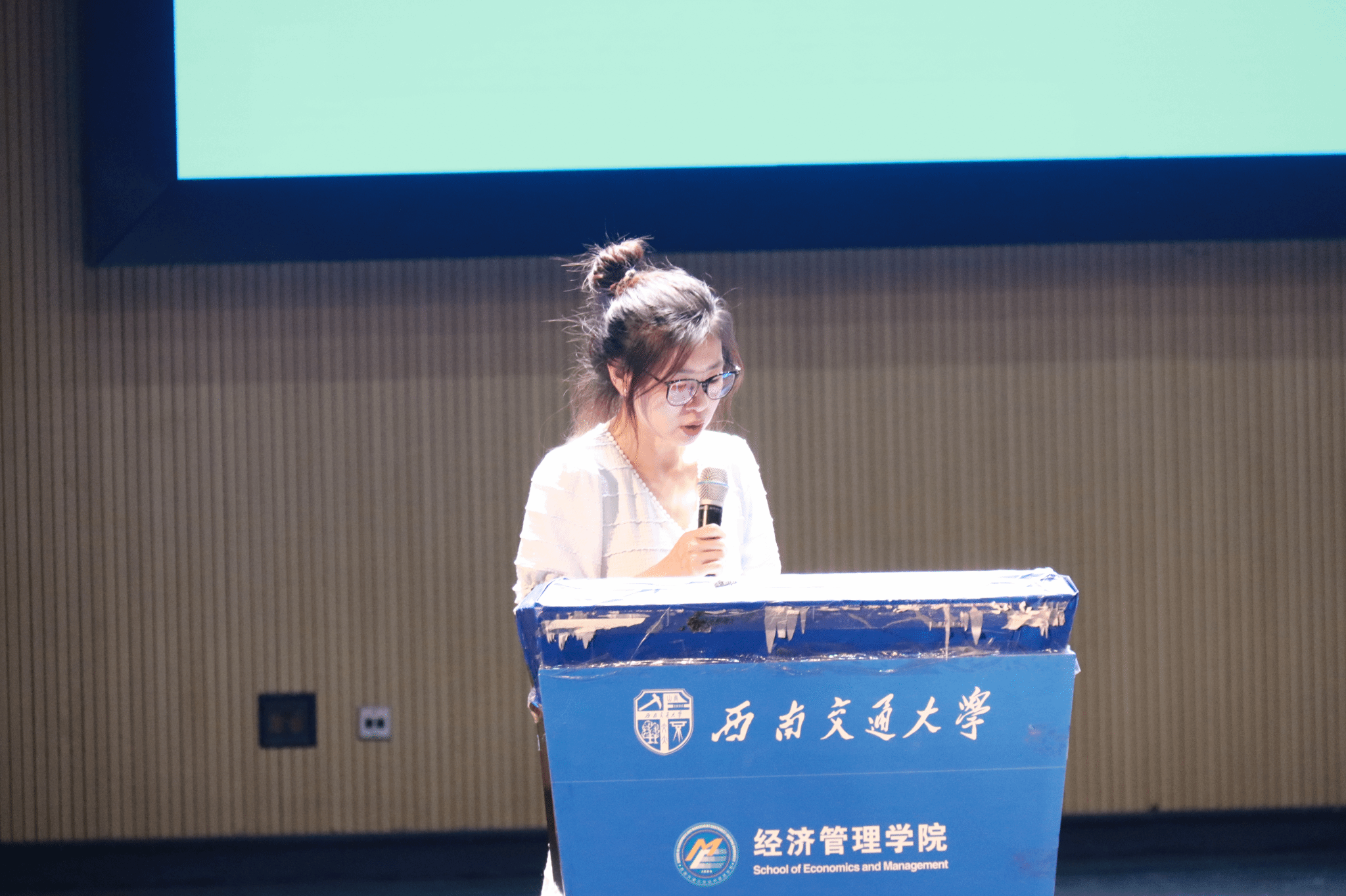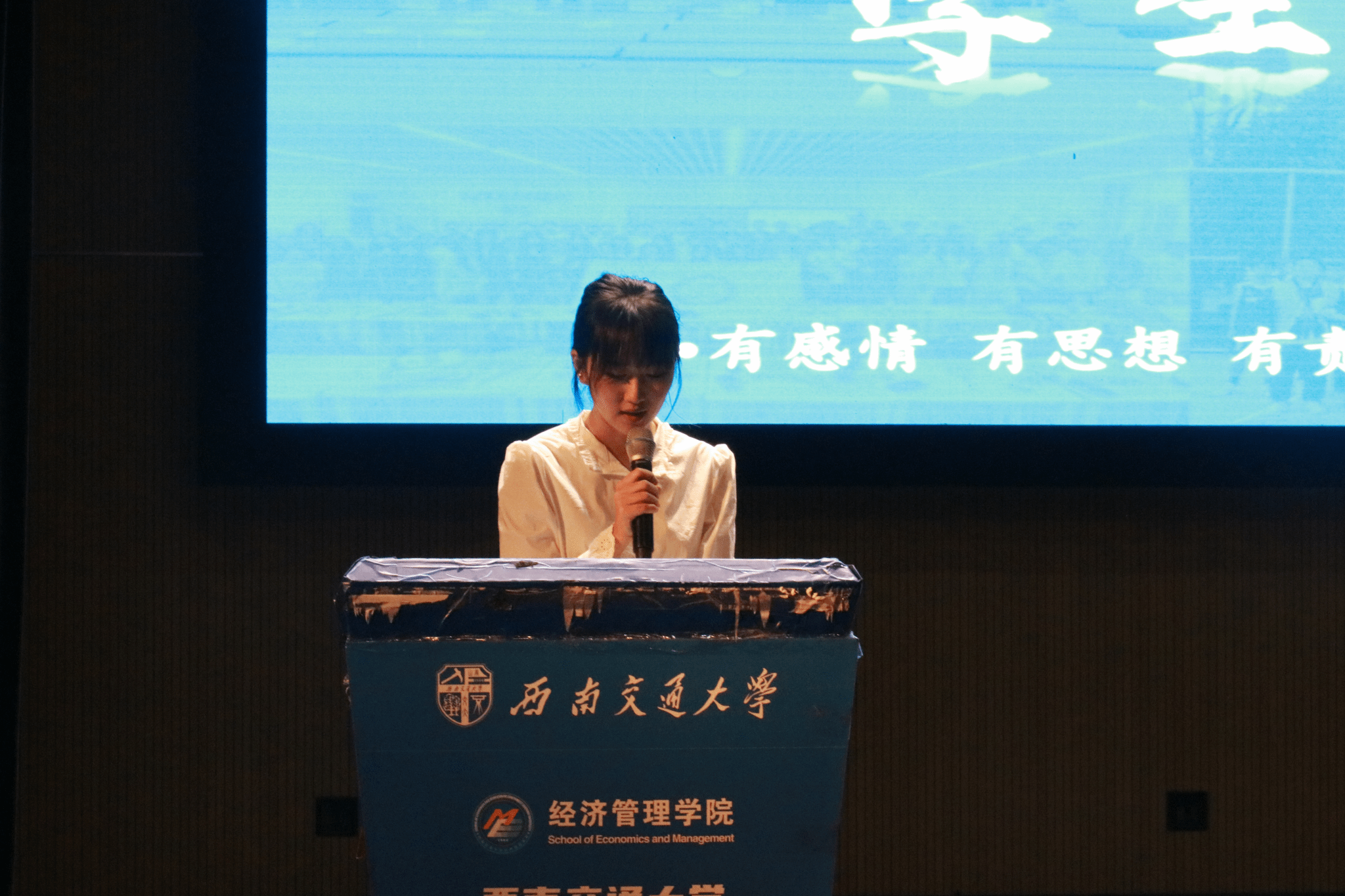 学院分团委书记贾佳对大会进行总结。她代表经济管理学院对新同学们表示热烈欢迎,并强调团学组织在学生成长中的重要作用。团学组织通过各类活动展现学生风采,提升学生能力。同时,她也呼吁新生们积极加入团学组织,找到最适合自己的舞台,勇敢迎接挑战,丰富大学生活,书写属于自己的精彩篇章。
