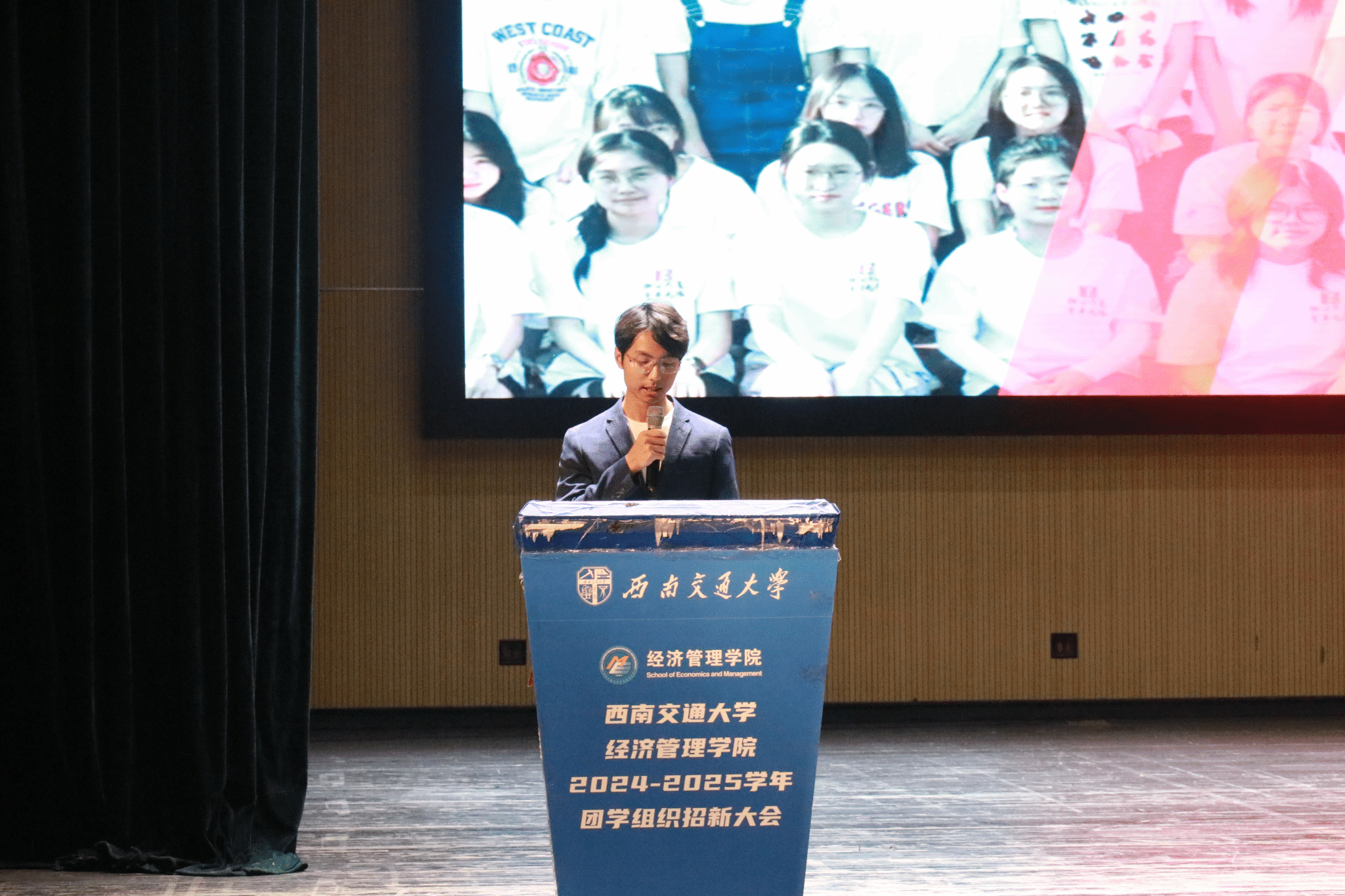 9月5日下午,经济管理学院团学组织招新大会在九里大学生会堂召开。经济管理学院分团委书记贾佳、学院六大团学组织指导老师、本科2024级辅导员出席,2024级全体新生参加。