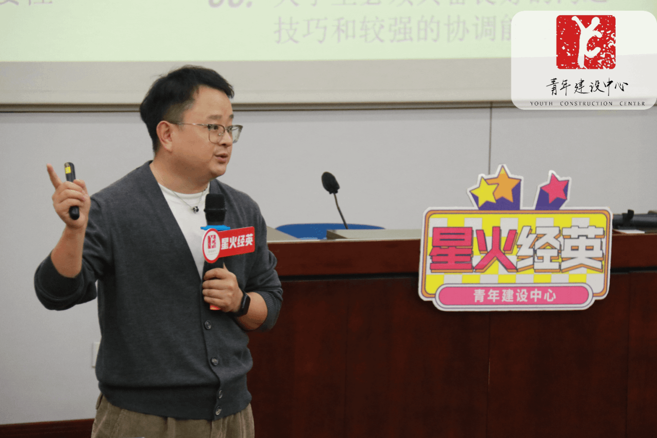 2024年10月17日晚19点半,“星火经英”计划第十四期第三次团干部培训暨青年讲师团讲座于J0215顺利开展,本次培训由校青年讲师团、经济管理学院团委副书记陈建奇老师主讲,主题为“心理疏导与协调沟通”,旨在帮助团干部们解决心理困扰,提高人际交往与沟通能力,享受健康快乐的生活。