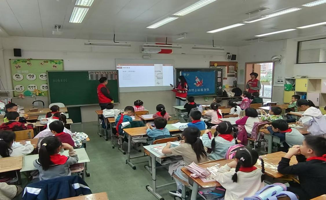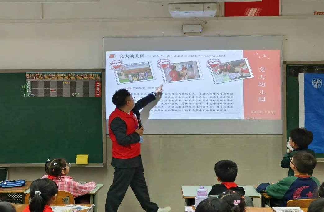 来到益州小学二年级十三班的课堂,陈建奇首先向小朋友们介绍了团队的成员以及经管青协的组织架构和概况,其中涵盖了各个部门的具体介绍及其职责,还包括阳光家园、敬老院、善工家园、交大幼儿园等志愿服务基地,以及爱心雨伞、旧衣回收、阳光义卖等青协品牌活动。随后,陈建奇对青鸽志愿服务队进行了介绍:“青鸽志愿服务队是西南交通大学经济管理学院团委青年志愿者协会下属的公益队伍。志愿通过助老、助农、扶弱、扶幼等服务活动,为社会公益赋能,助力乡村振兴。”