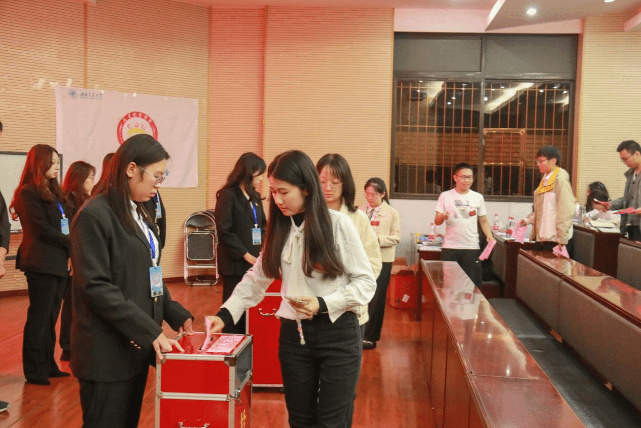 接着全体代表在主会场中展开了第二次全体会议并审议通过了《关于西南交通大学经济管理学院2023-2024届学生会工作报告的决议》《关于西南交通大学经济管理学院2023-2024届研究生会工作报告的决议》,匿名投票选举了新一届学生会和研究生会主席团成员,并于现场宣布了大会的选举结果。