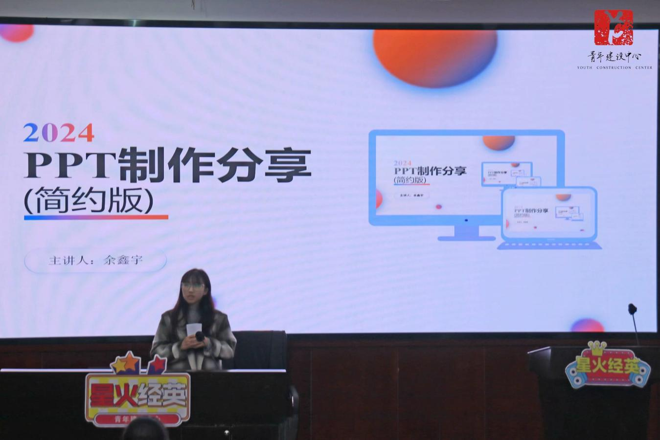 2024年11月15日晚19点,“星火经英”计划第十四期第五次团干部培训于J0228顺利开展,本次培训由西南交通大学PPT协会会长余鑫宇主讲,主题为“PPT制作技巧与美化实操”,旨在帮助团干部们提升PPT制作能力,更好地将制作技巧运用在实践之中。