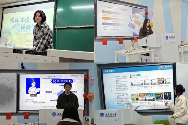 思想铸魂维度:以年级大会形式集中开展“开学第一课”,引导新生坚定理想信念;邀请“音乐里的故事”讲演团开展音乐里的思政课,帮助新生在音乐中坚定信念、挺膺担当;邀请专家开展校史校情讲座,增强新生归属感和荣誉感。生活适应维度:九里校区游园会让新生在轻松愉快的氛围中熟悉校园环境;培养方案解读答疑会,帮助新生了解专业培养目标、做好学业规划;资助政策解读会,切实保障家庭经济困难学生成长成才,为每一位同学的全面发展保驾护航。行为规范维度:规章制度解读会,引导新生明确行为规范,遵守校规校纪;学风督导经验分享会,任课教师、班主任老师齐上阵,引导新生树立正确学习态度,养成良好学习习惯;九里堤派出所民警为新生开展网络安全知识宣讲,引导新生对网络诈骗说“不”。生涯引导维度:邀请行业专家开展经管行业解读会与求职规划指导,院友校友分享经管领域的最新动态和职业发展趋势,帮助新生了解行业前景,明确职业方向;开展新媒体培训指导,帮助新生提升个人核心竞争力。心理健康维度:加强日常心理健康教育,引导新生学会有效的情绪管理与压力调节方法,筑牢心理健康“防护堤”;花香进寝室园区,让鲜花种植行动调节学习压力,用美育沁润身心。经管学院拓展入学教育内容,共举办讲座和活动超20场次,实现2024级新生100%覆盖,引导新生尽快完成角色转变。