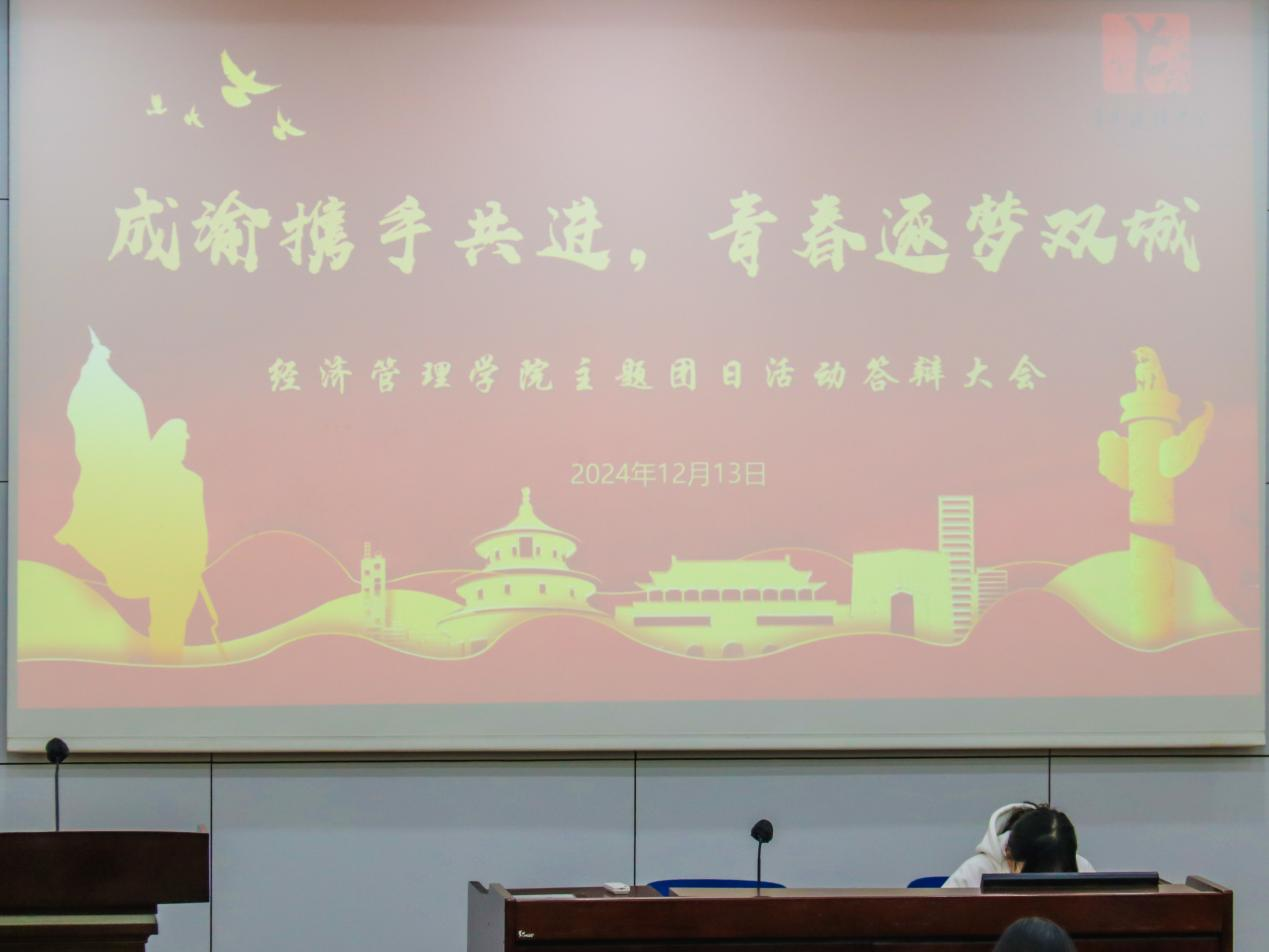2024年12月13日晚,经济管理学院“成渝携手共进,青春逐梦双城”主题团日活动答辩大会在J0215顺利举行。经前期考核,本科2023级和本科2024级共有9个优秀团支部入选此次主题团日活动决赛。