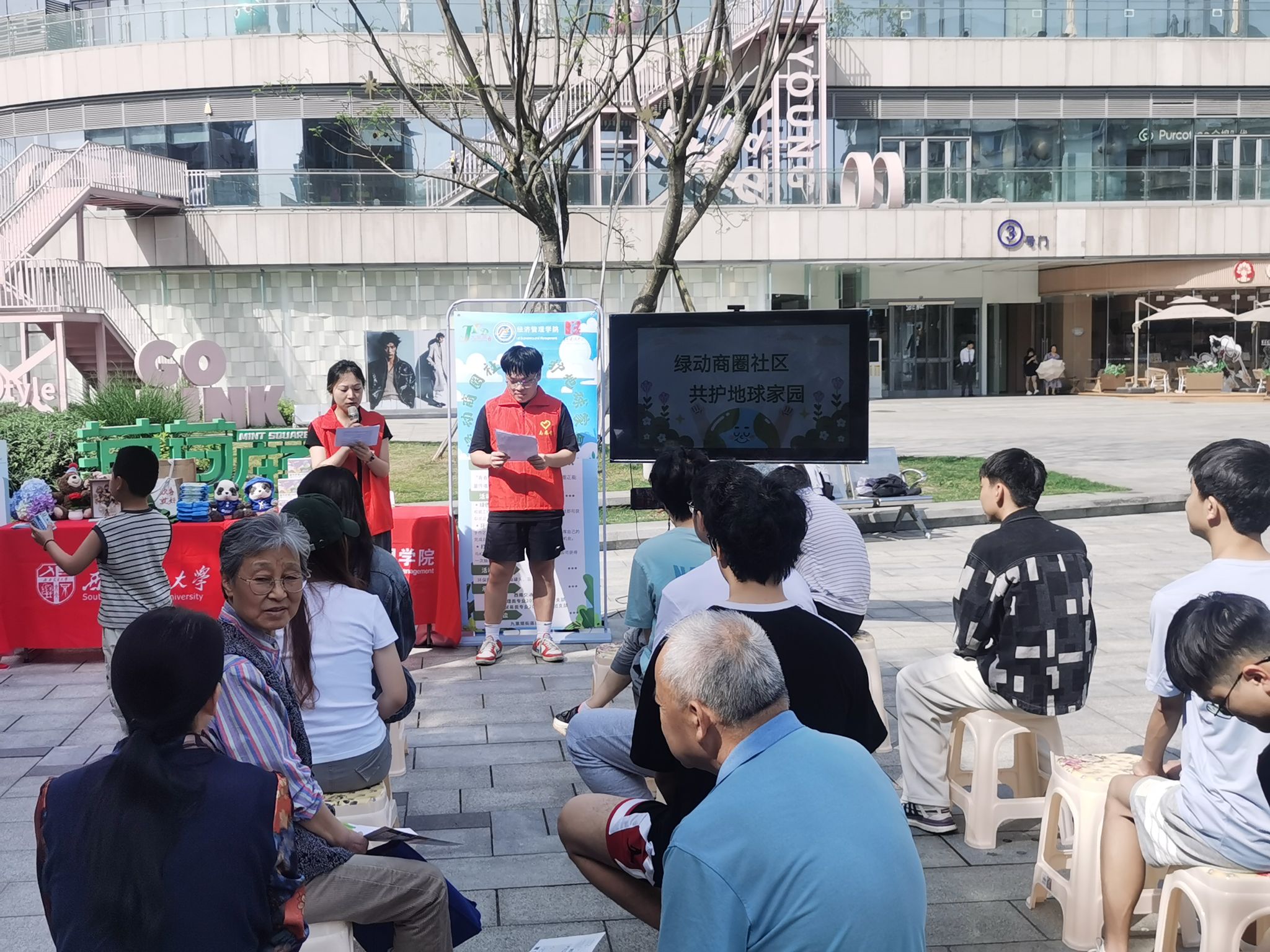 2025年4月22日是第55个“世界地球日”,为深入学习宣传贯彻习近平生态文明思想,引导社会公民牢固树立和践行绿水青山就是金山银山的理念、增强环境保护的意识,4 月 19 日上午,共青团西南交通大学经济管理学院委员会、九里堤街道社区、凯德广场金牛共同开展了“绿动商圈社区,共护地球家园”主题活动。本次主题活动由工商管理类专业2024级1班团支部和经济与贸易类专业2023级1班团支部承办。