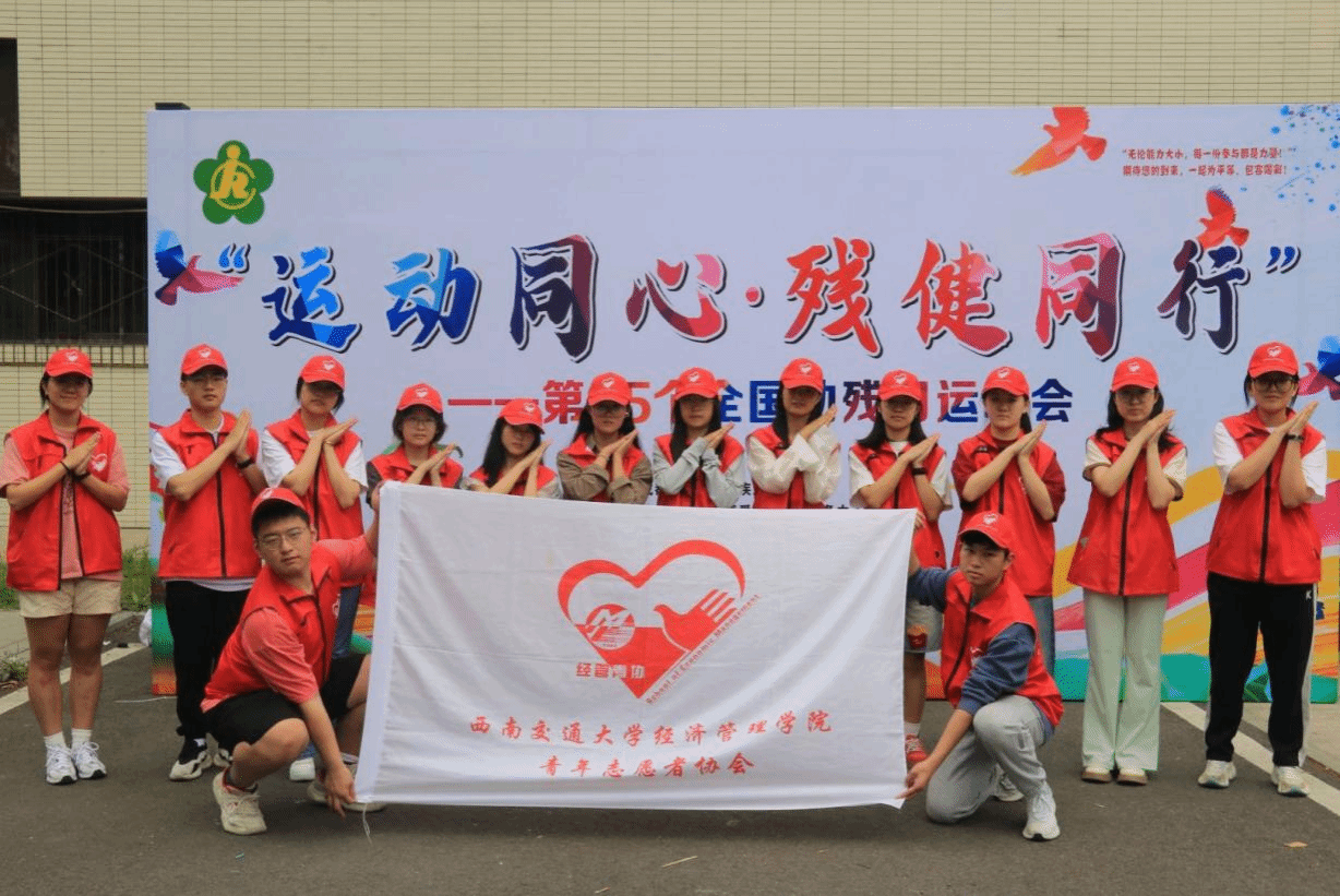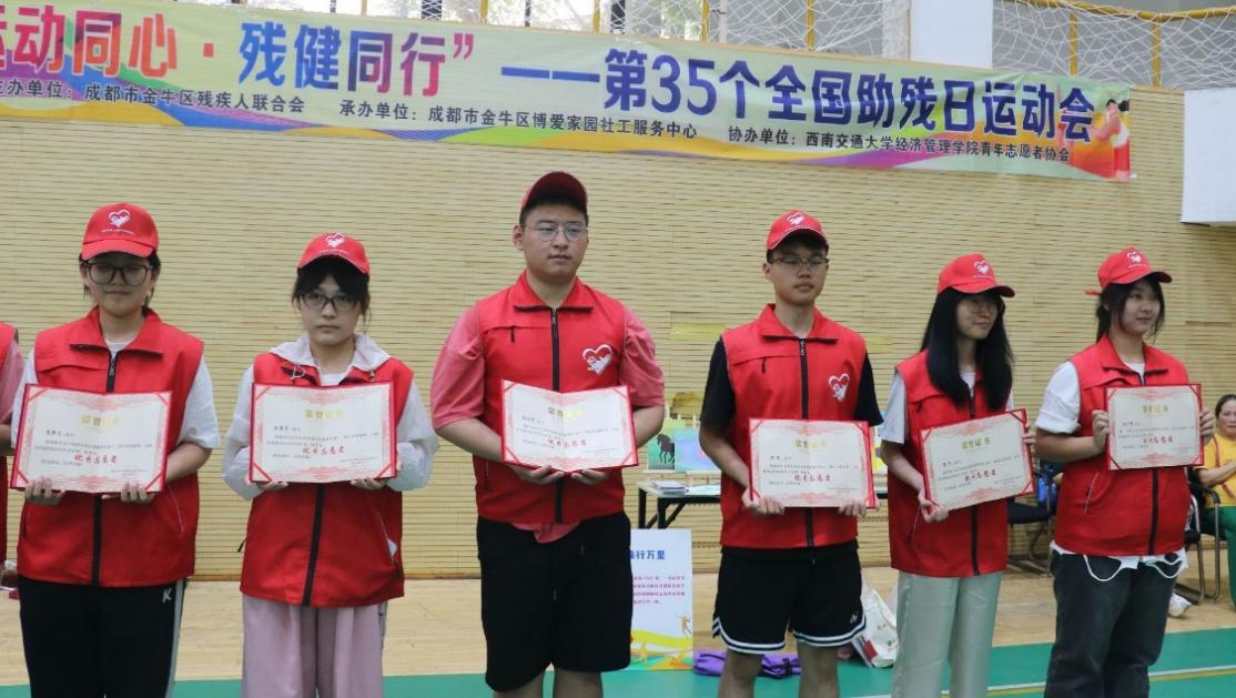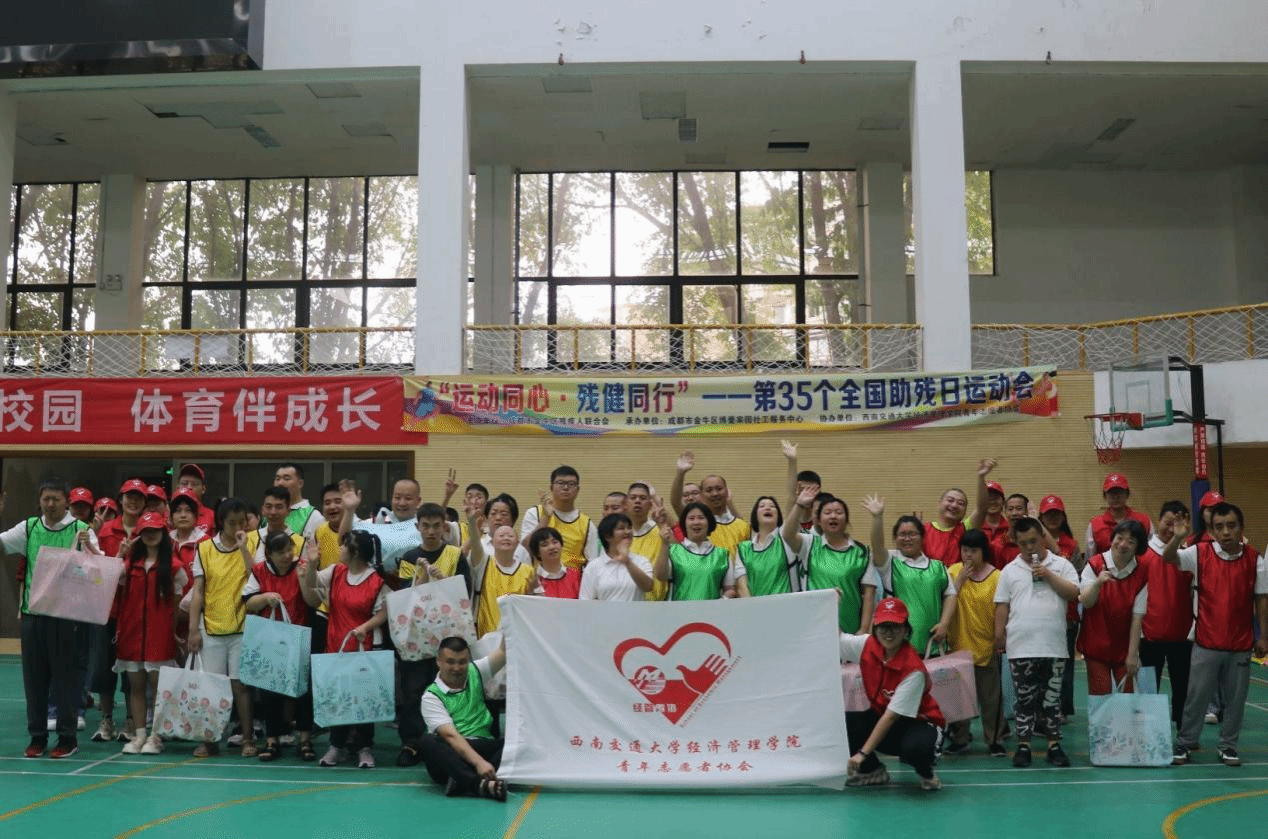 为迎接第35个全国助残日的到来,2025年5月16日下午,由成都市金牛区残疾人联合会主办,西南交通大学经济管理学院青年志愿者协会协办,成都市金牛区博爱家园社工服务中心承办的“运动同心·残健同行”全国助残日主题活动在西南交通大学詹天佑体育馆成功举办。活动旨在通过丰富多彩的体育活动,促进残障人士与社会大众之间的相互理解和融合,展示残障群体自强不息的精神风貌。活动吸引了来自金牛阳光家园的学员及家长、西南交通大学师生的共同参与。