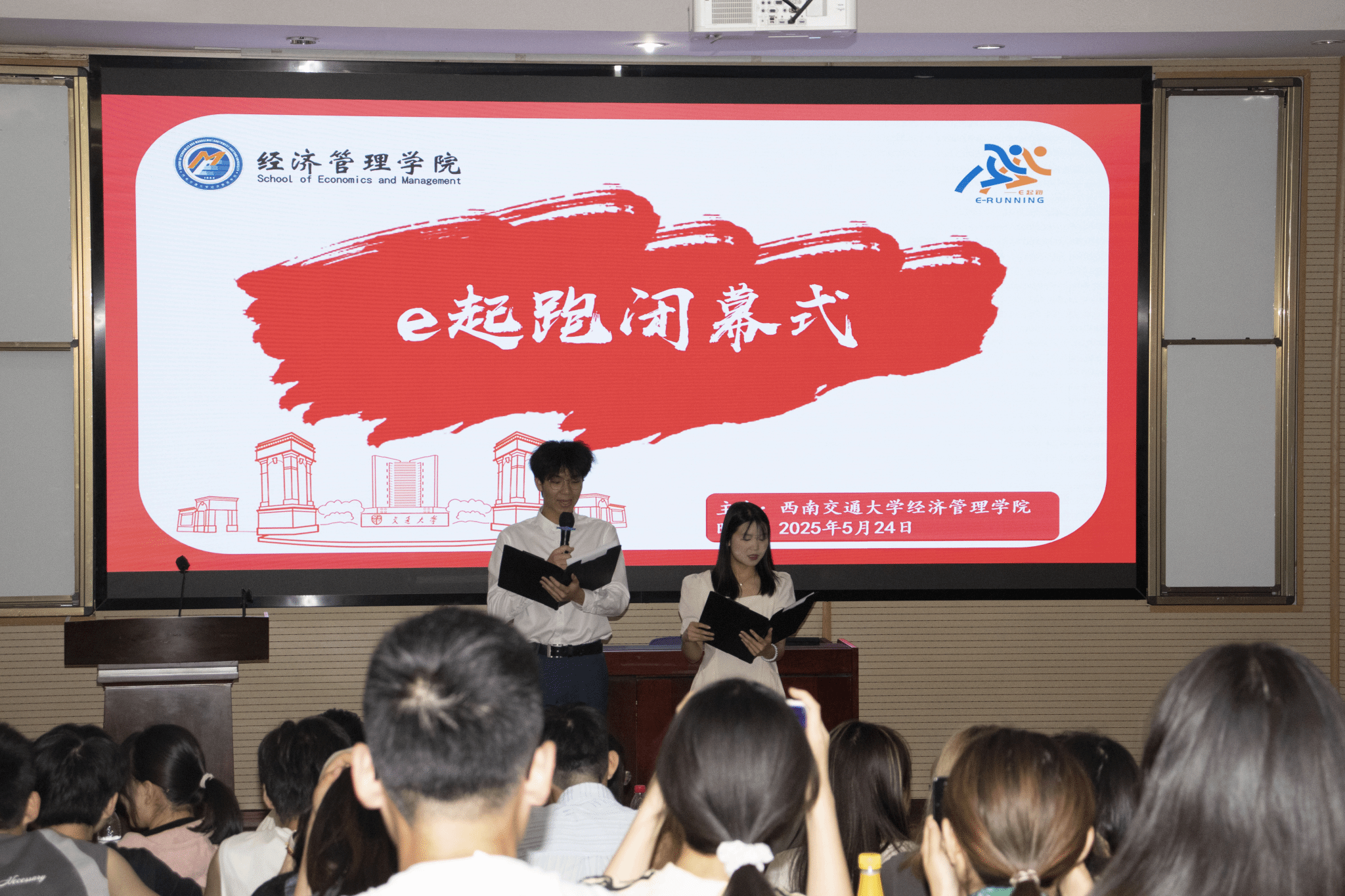 2025年5月24日晚,经济管理学院第二季e起跑活动闭幕式顺利举行。学院党委副书记余小英老师,学院团委书记贾佳老师,学院团委副书记、本科2023级辅导员苏扬老师出席活动,与同学们共同回顾奔跑历程,见证活动圆满收官。