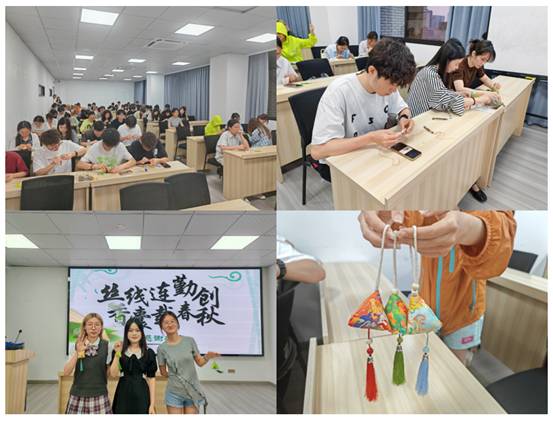 香囊作为端午节习俗的重要载体,寄托着驱邪避疫、祈福安康的美好寓意。活动中,同学们深入了解了香囊的历史文化内涵及其象征的吉祥祝福。随后,大家兴致盎然地动手实践:挑选布料,细心缝制成精巧的三角香囊,填充精选的艾草、菖蒲等蕴含“天人相应”智慧的时令草药,并缀以流苏装饰。一针一线,不仅是对传统手工艺的亲身实践,更是在药香氤氲中深刻体验了传统节俗的魅力。通过亲手制作,同学们深化了对端午节文化的情感连接,切身感受到了传统工艺的温度与匠心。