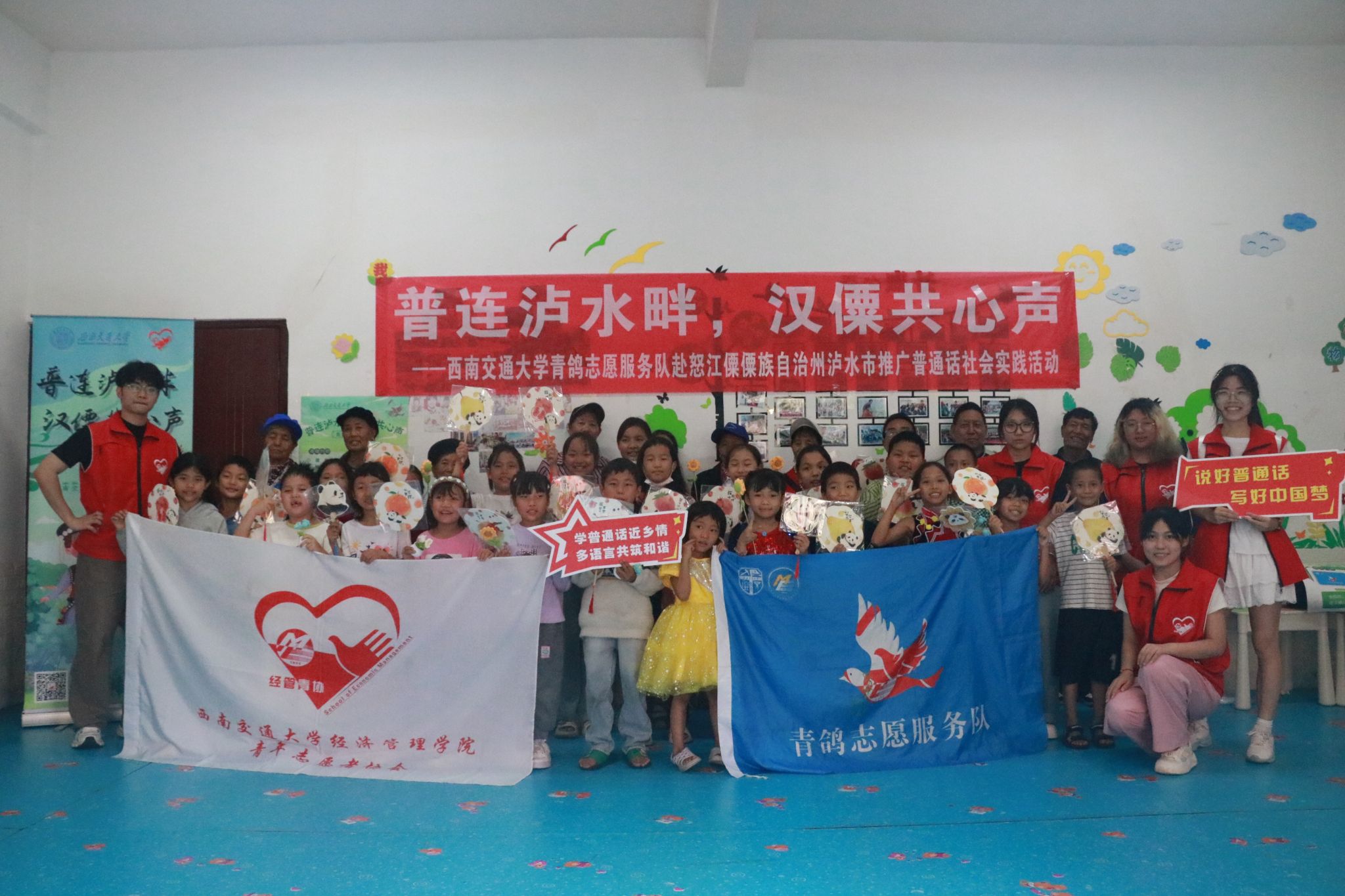 为深入贯彻落实习近平总书记关于教育的重要论述和关于语言文字的重要指示批示精神,进一步推动西部地区少数民族语言文字教育发展,服务铸牢中华民族共同体意识,助力乡村振兴战略实施,5月29日至5月31日,西南交通大学经济管理学院青鸽志愿服务队一行深入云南省怒江傈僳自治州泸水市开展“普连泸水畔,汉僳共心声”——推普助力乡村振兴社会实践活动。此次实践中,团队通过街头调研,定点摊位,课堂教育,走访宣传等形式,开展普通话调研和推广活动,普及民族共同语言,促进中华优秀传统文化传承和发扬,为赓续中华文明倾注青年力量,以青春之行助力乡村振兴。