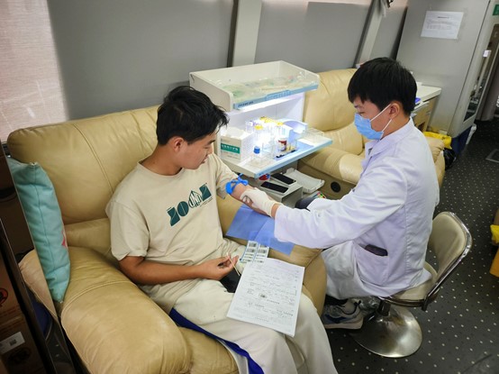 在献血车上,坐满了可爱且勇敢的献血者们,他们毫不犹豫地伸出手臂,挽起袖子,让医护人员对他们进行一系列采血工作;而车外,又有很多人带着勇气走上前来,让这份以热血传递希望的过程,在交大校园里不断延续。