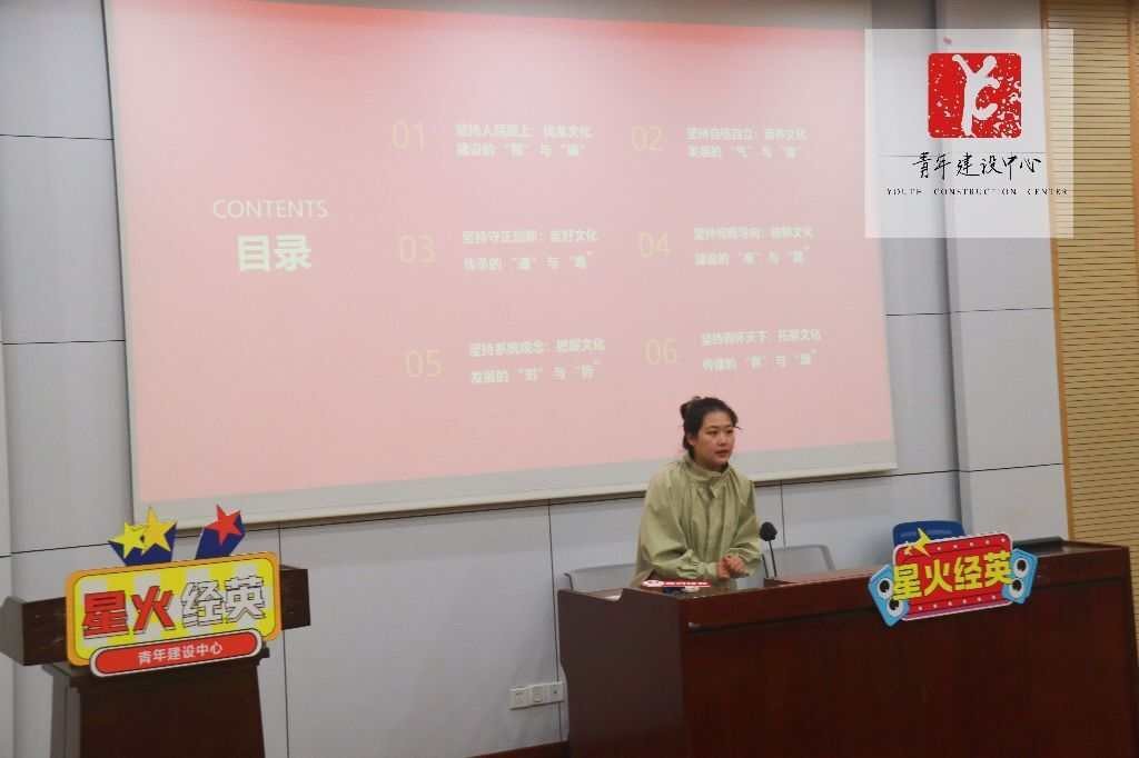 2025年10月23日晚上19时30分,“星火经英”计划第十六期第三次团干部培训于J0215顺利开展,本次培训由理论宣讲团王楚嘉主讲,主题为“深学笃行习近平文化思想方法论,书写新时代文化新篇章”,旨在引导团干部们深刻学习把握文化建设实践路径。