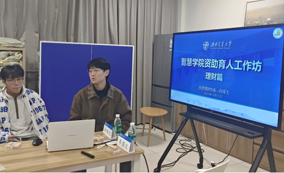 2025年12月11日晚7点,西南交通大学经济管理学院社团投资理财协会应智慧学院之邀,深度参与其“资助育人赋能工作坊”系列活动。协会会长许鸿飞、副会长李国文担任主讲人,为工作坊的同学们带来了一场兼具专业性与实用性的理财知识分享,旨在帮助同学们树立科学的财务规划理念,提升财商素养。