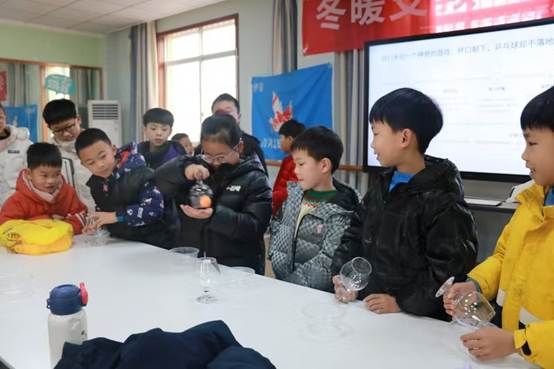图为实践队员正在给小朋友们上物理课