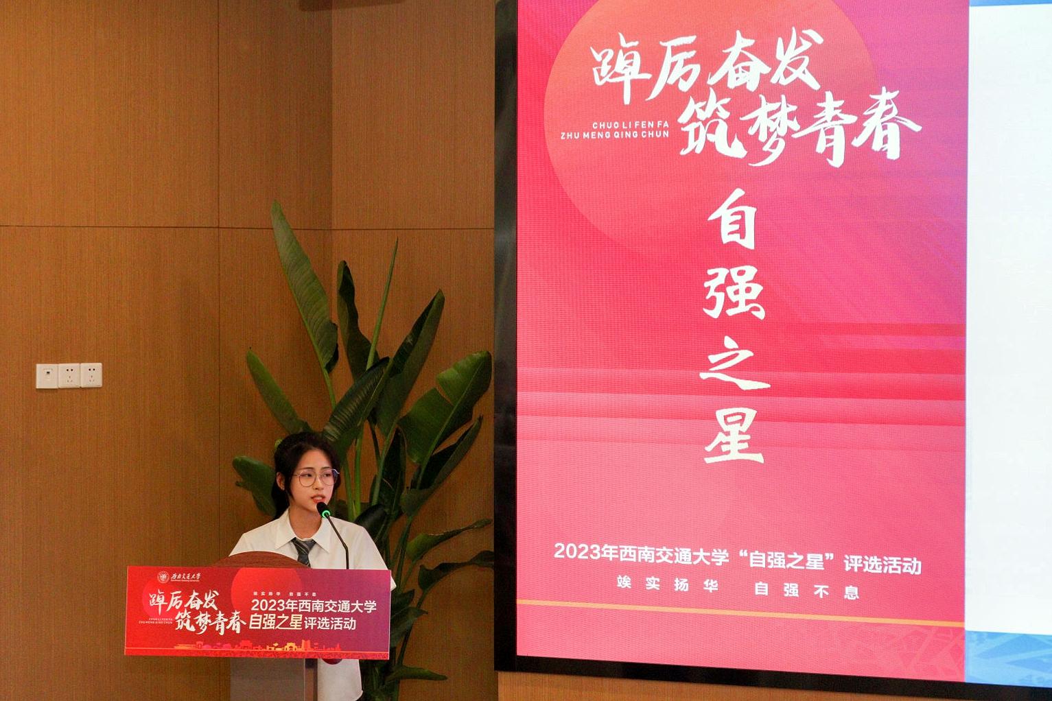 天行健,君子以自强不息。来自经济管理学院的黄琬获得了2023年西南交通大学“自强之星”的荣誉称号。黄琬学习成绩名列前茅,竞赛成果突出,在学生工作方面也是有条不紊,让我们跟随我院经英传媒中心的记者的视角一起去了解她吧!